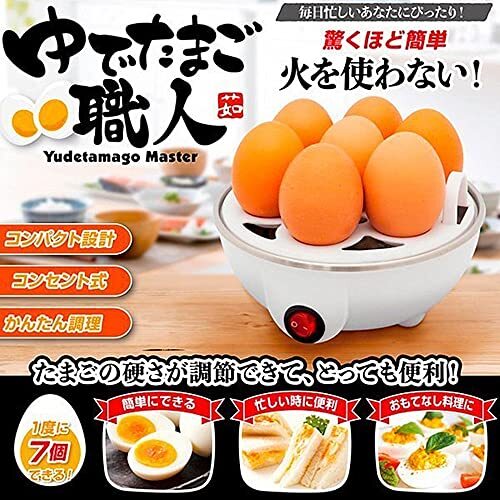 「ゆでたまごメーカー 1度に7個できる温泉玉子マスター 火を使わない ゆでたまご器 温泉玉子 ゆでたまご職人 コンセント式」▼9999018393949▼(商品説明)驚くほど簡単!火を使わない!1度に7個できる電動式「ゆでたまご職人」!・水とたまごを入れてスイッチを入れるだけ。たまごの硬さ調整できて、とっても便利。・火を使わないから安全。電動コンセント式。コンパクト設計。省スペース収納可能。・毎日忙しい方にピッタリ!時間がない朝など便利&時短調理!・ピクニックなどの定番、サンドイッチ作りにも大活躍!説明 【特徴】 火を使わずかんたん調理! ゆでたまご職人 火を使わずゆでたまごができる! 好みのたまごの硬さ 調節も可能♪ 驚くほど簡単!火を使わない! 1度に7個できる電動式「ゆでたまご職人」! ●水とたまごを入れてスイッチを入れるだけ。 ●たまごの硬さ調整できて、とっても便利。 ★温泉たまごもできます♪ ●火を使わず、簡単に調理ができる。 ●使い方シンプル!かんたん調理。 ●火を使わないから安全。電動コンセント式。 ●コンパクト設計。省スペース収納可能。 毎日忙しい方にピッタリ!時間がない朝など便利&時短調理! ピクニックなどの定番、サンドイッチ作りにも大活躍! 【商品詳細】 本体サイズ:約φ15.5×14cm 重量 :約315g 電源:AC100V 50Hz/60Hz 消費電力 :350W 調理可能個数:7個 加熱時間:約9-11分 材質:ステンレス、PVC セット内容:本体、フタ、たまごトレー、取扱説明書 【ご購入の前に必ずご確認ください】 ※当店はエコの観点から簡易包装にて商品をお客様のもとにお届けします。商品の箱に直接伝票を貼って配送する場合もございます。 ※沖縄・離島行きの荷物ですが、現在全ての荷物を陸送で送っているため、到着まで1週間~2週間かかり、日にちの指定はできません。あらかじめご了承ください。 ※ヤマト運輸の宅急便の場合で、離島他の扱い離島・沖縄は追加送料2500円がかかる場合があります。ご了承ください。