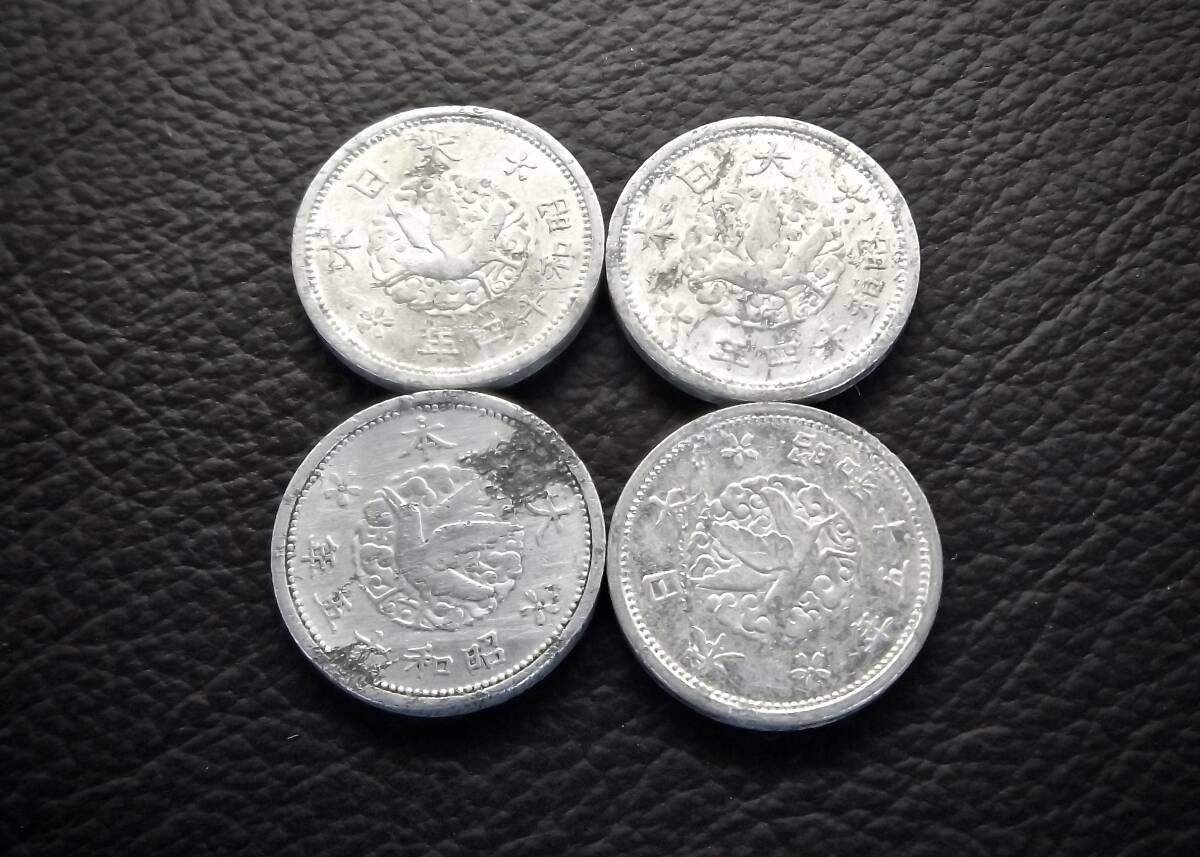 カラス1銭アルミ貨 4枚セット  送料無料 (17024)硬貨 古銭 アンティーク 日本 貨幣 近代 コレクション コイン