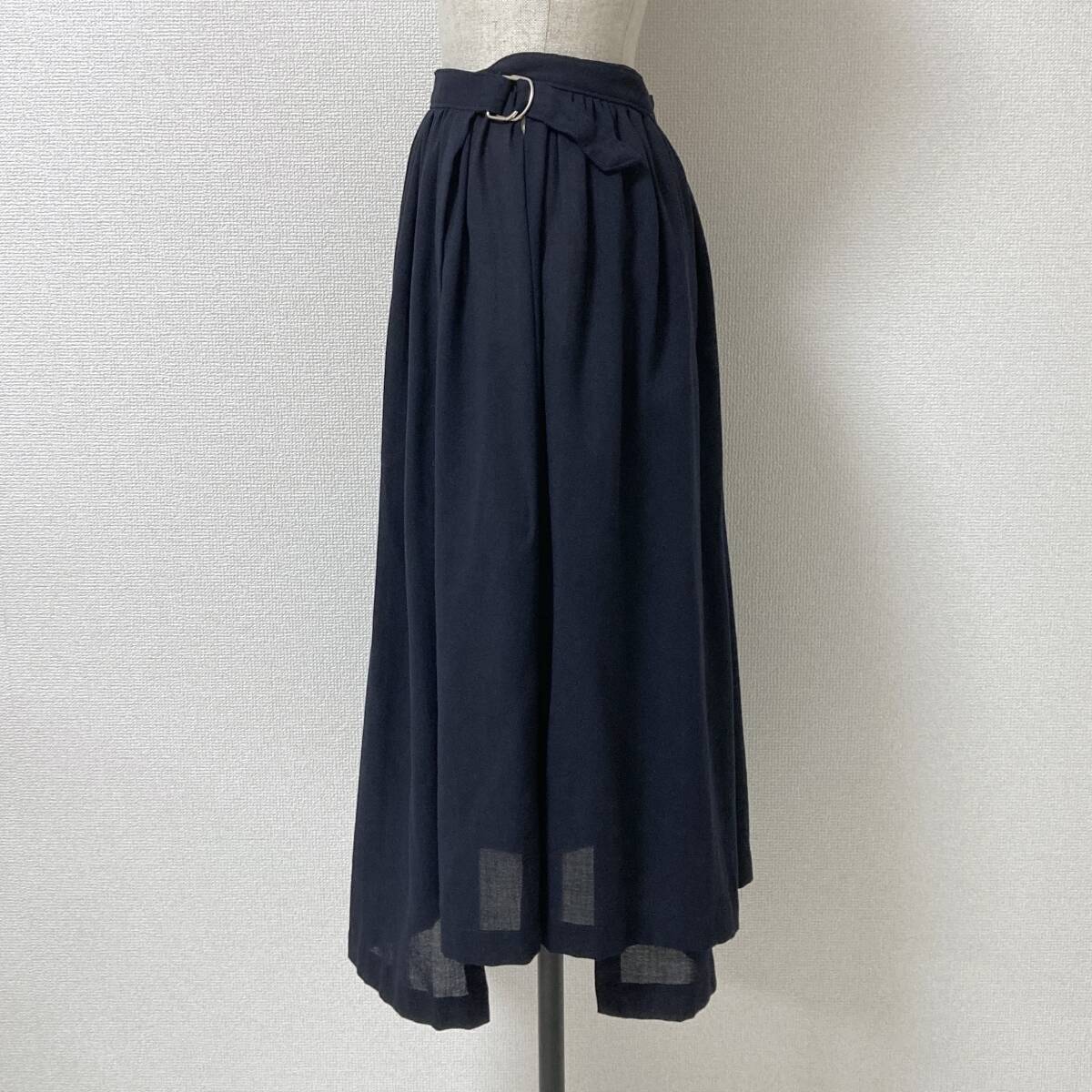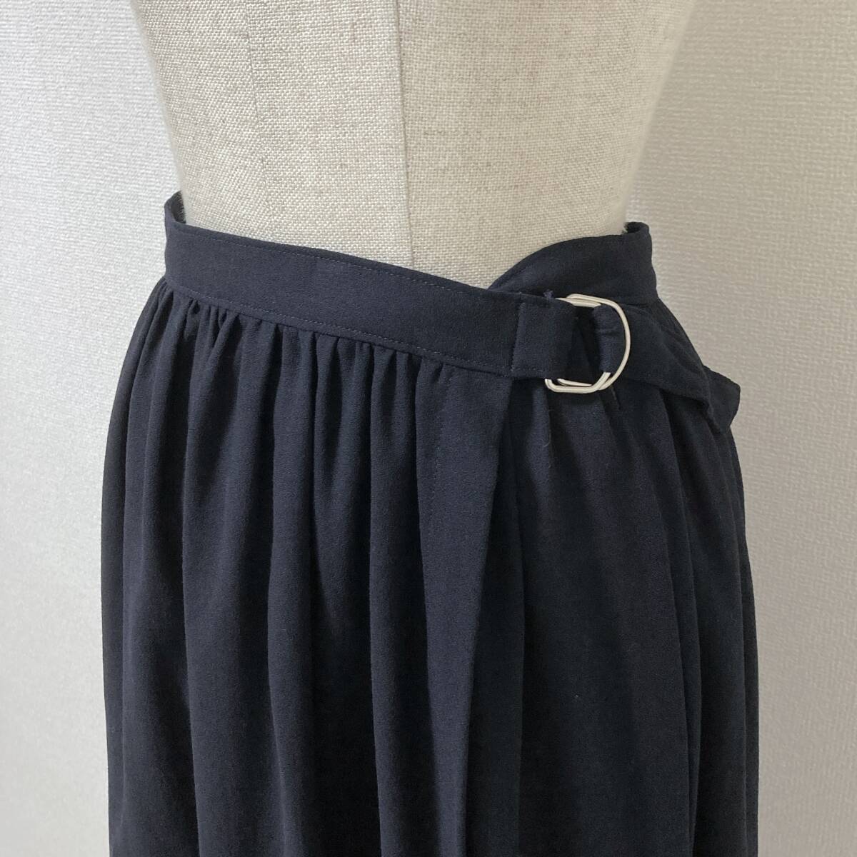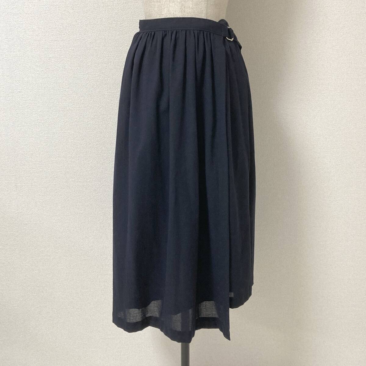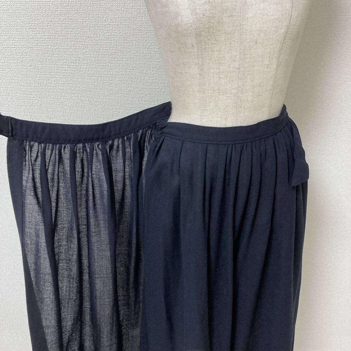 AD1992 tricot COMME des GARCONS 2重 ラップ フレア スカート ウール 紺 トリココムデギャルソン 巻き 90s VINTAGE archive 4070378