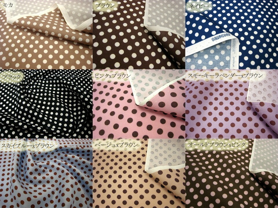 定番人気の水玉柄に、素敵なカラーが新発売されました。定番のカラーから、個性的なカラーまで...どの色を使うか、とても迷ってしまう32色展開です。こちらページでは内14色を紹介しております。スケアー生地の薄手の生地で、小物、洋服、インテリアなど幅広くお使い頂けます。(水玉の大きさ約6mm)