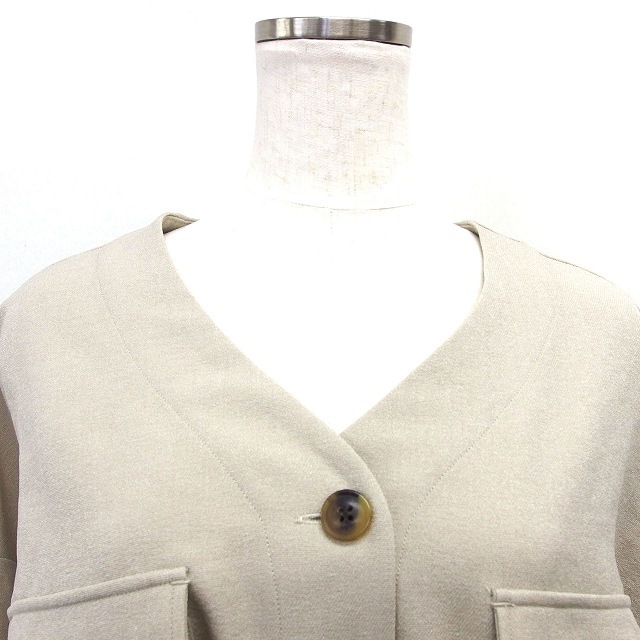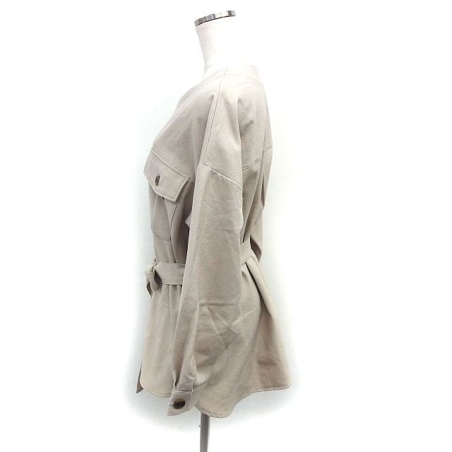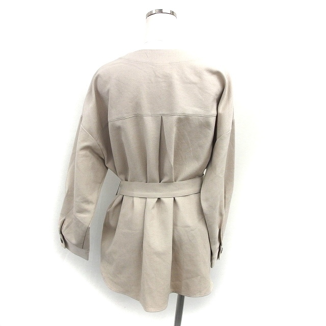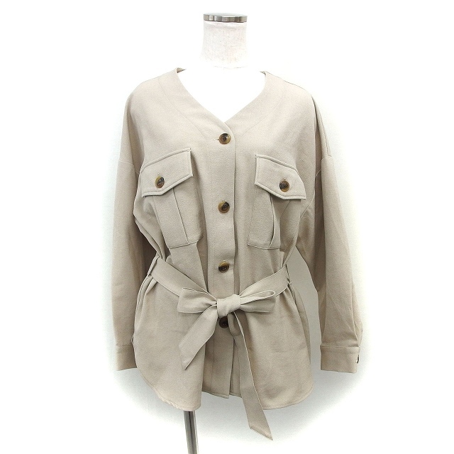 エージーバイアクアガール AG by aquagirl シャツジャケット アウター リボン ノーカラー タック 薄手 ゆったり ワイド M アイボリー