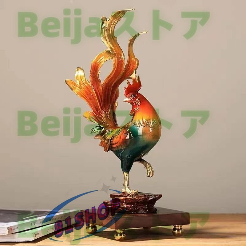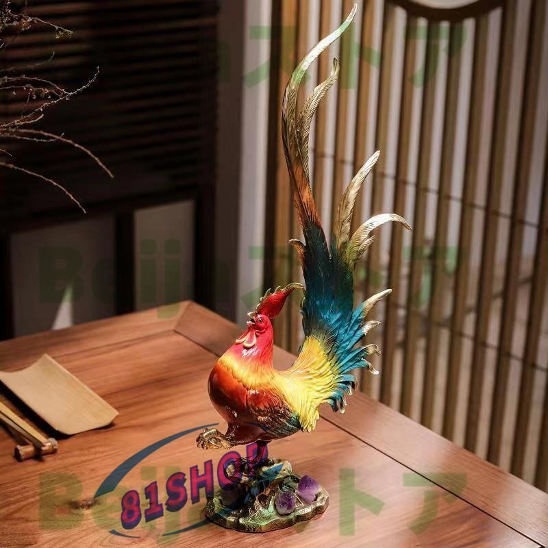 高級製品! 鶏 雄鳥 至極の彫刻 精工オフィス装飾風水金の鶏が吉報を告げる置物テ 工芸彫刻 装飾品 置物