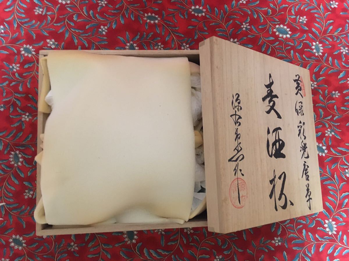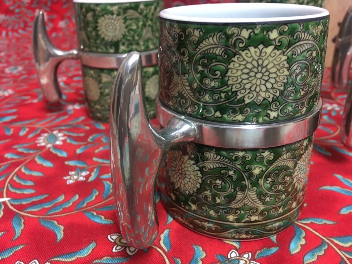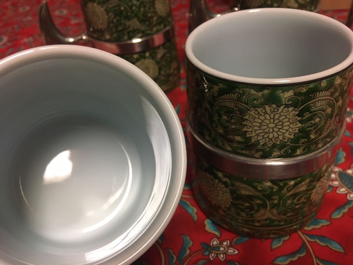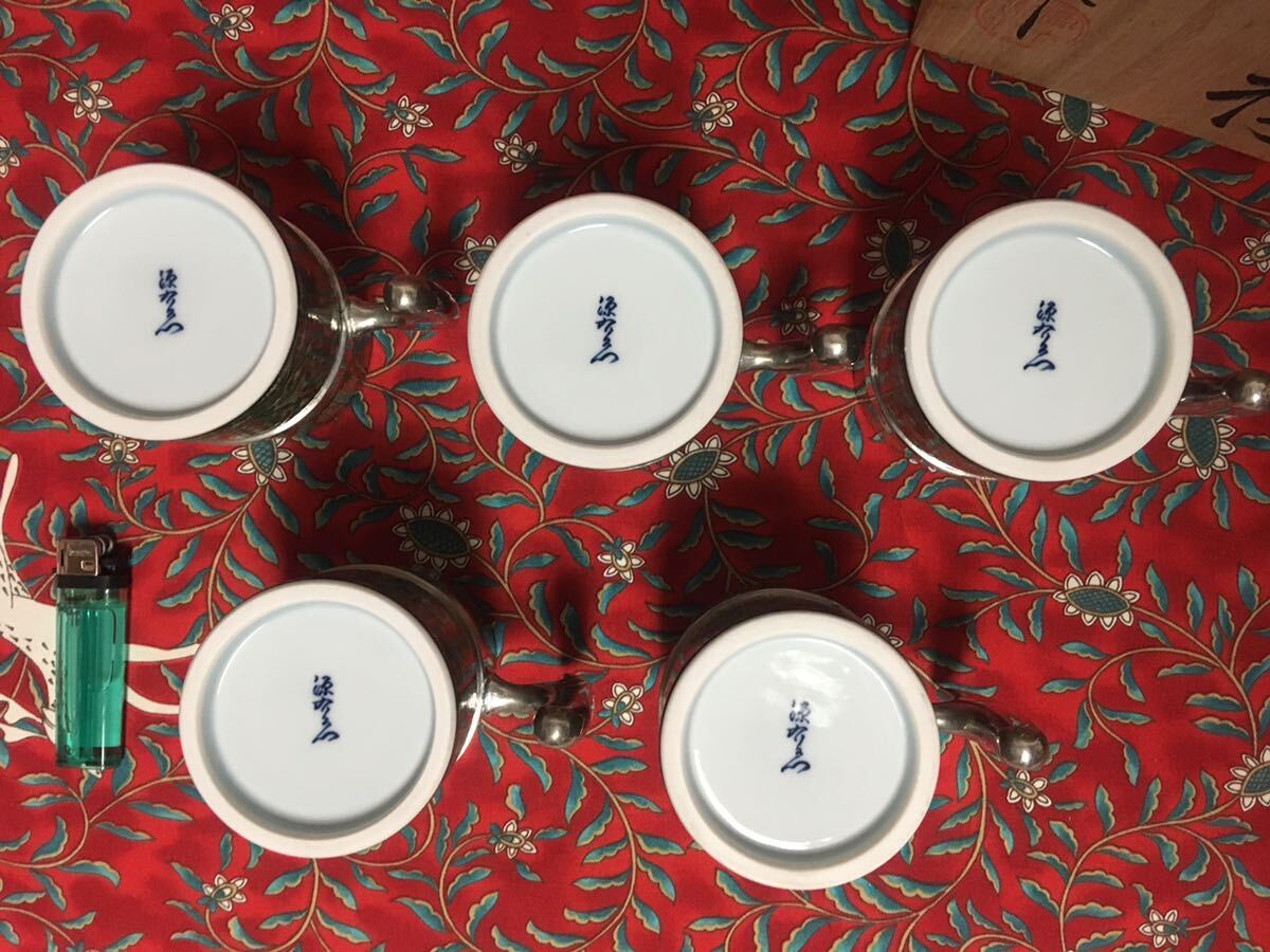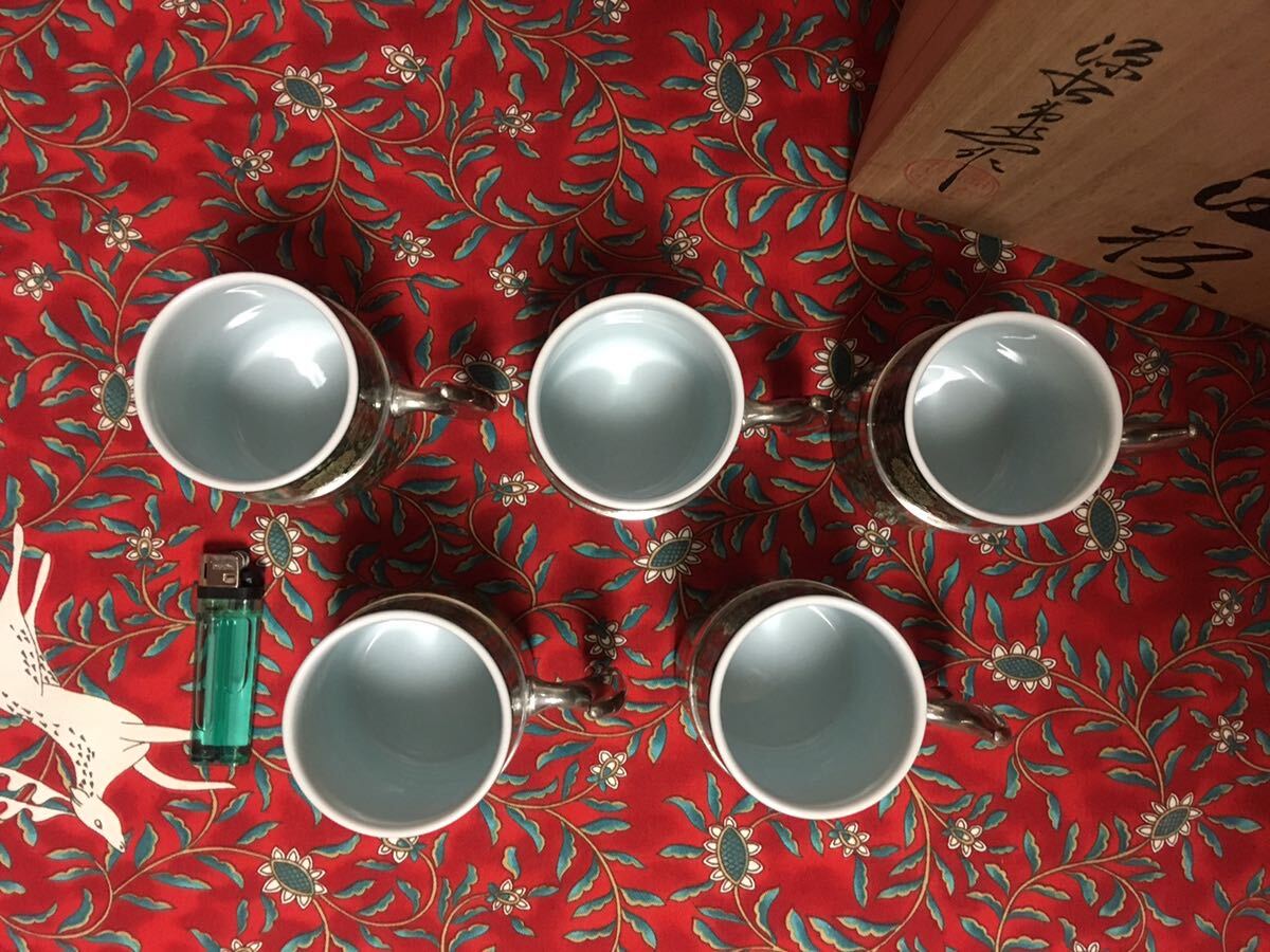 源右衛門の 黄緑彩兜唐草 麦酒杯 5個組 共箱付 保管品です。