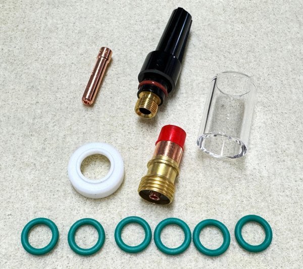 通常トーチでは見えない角度からでも溶接部を目視で確認しながら 溶接できる便利なガスレンズセットです。 1セットお試し価格です!!
