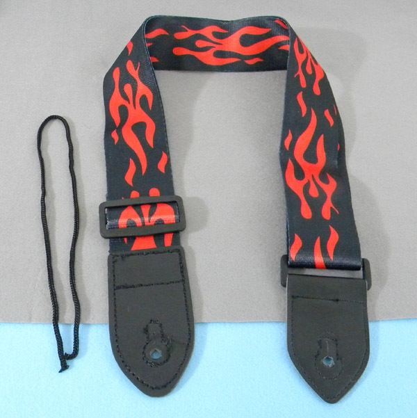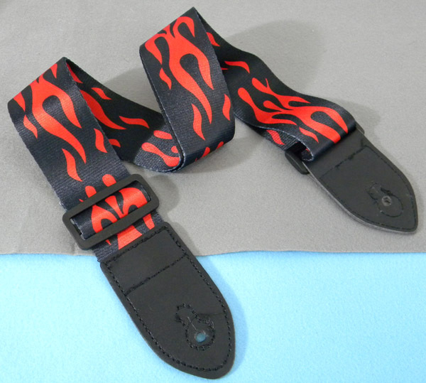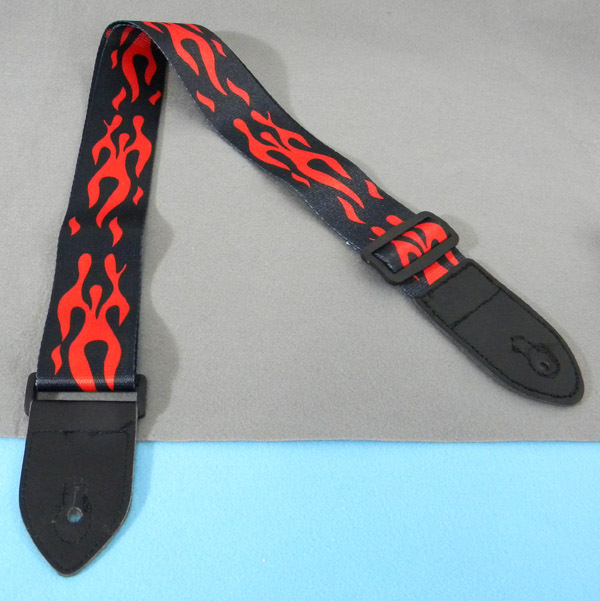 ★ ギター ストラップ ★ 赤炎模様(フレイム柄)☆ 新品・未使用 ☆ 送料無料 ☆