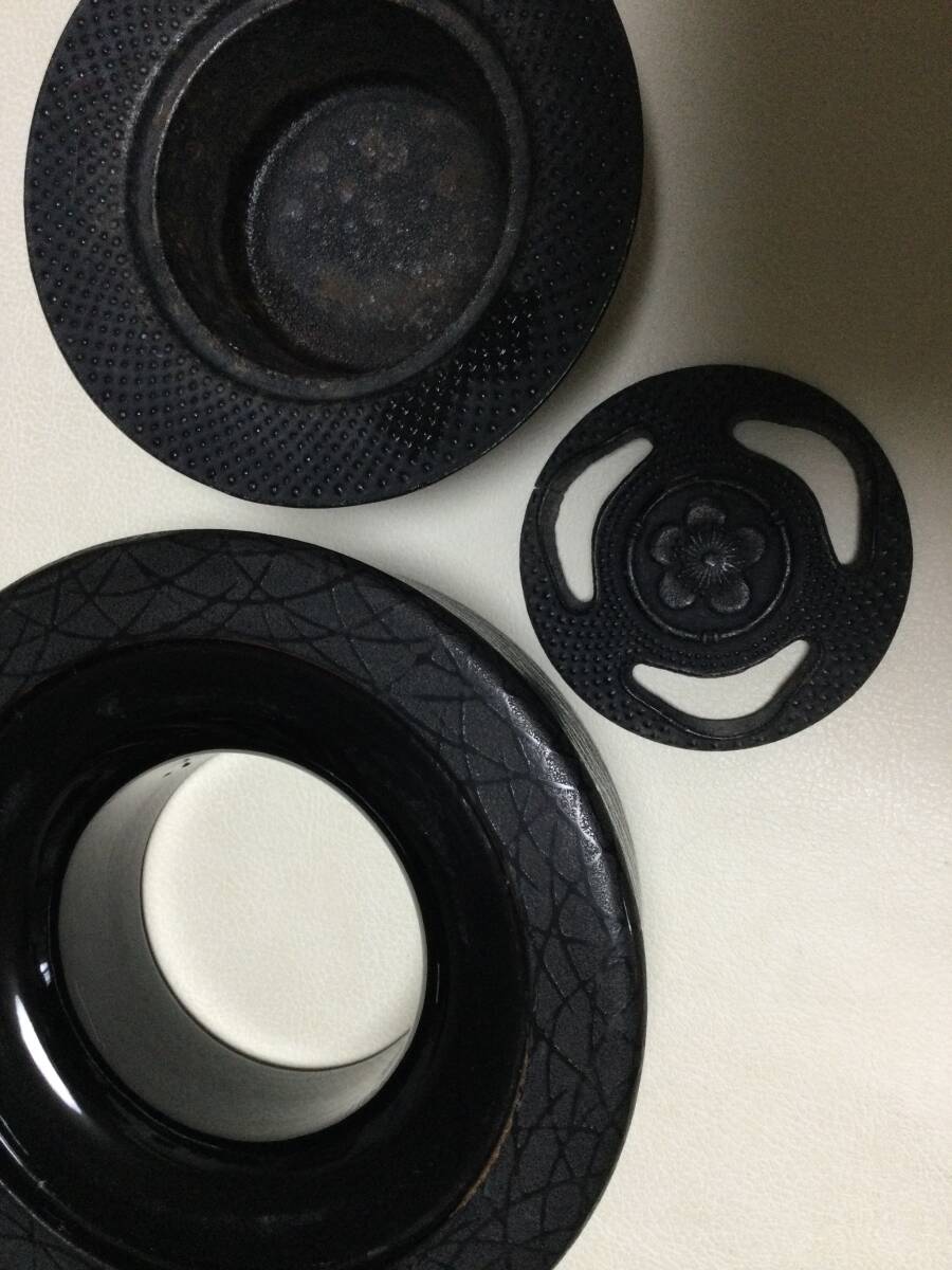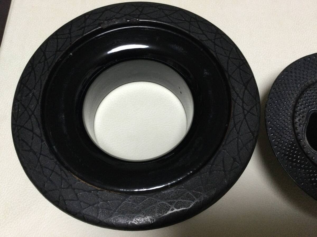 艶消しの紋紗塗の塗肌と鉄器の質感が微妙なコントラスト 直径17×高5.5cm