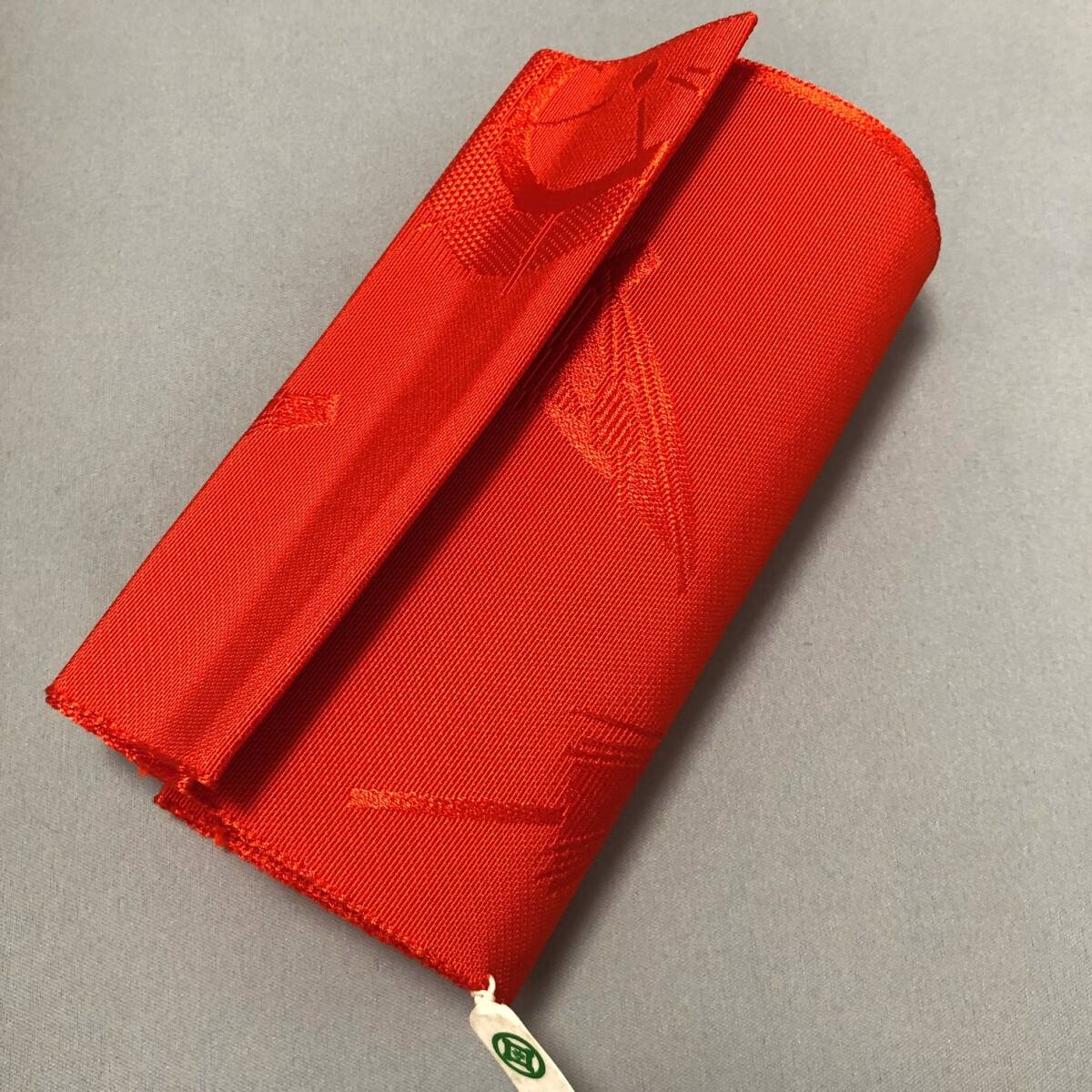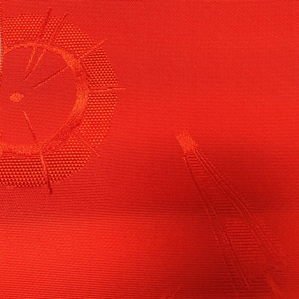 和服帯 未仕立て反物 半幅帯 オレンジ 単色 織り柄 傘柄の長期保管品です。