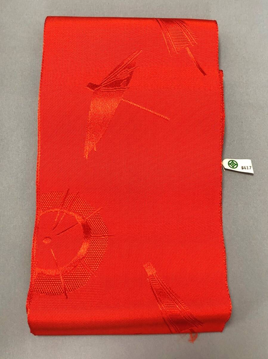 和服帯 未仕立て反物 半幅帯 オレンジ 単色 織り柄 傘柄