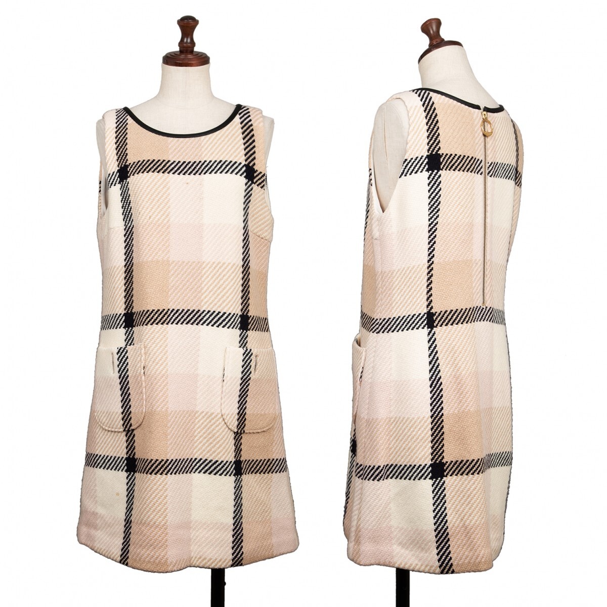 | ブルーレーベルクレストブリッジ BLUE LABEL CRESTBRIDGE チェックパッチポケットノースリーブチュニック ベージュピンク紺36 |