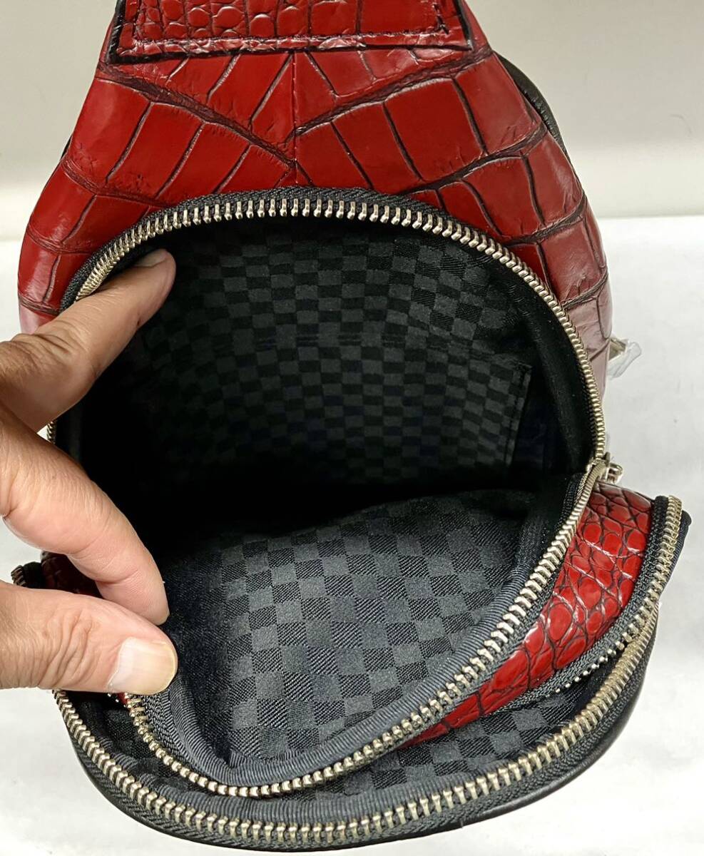 素材、クロコダイルワニ革、部分牛革とナイロン地
