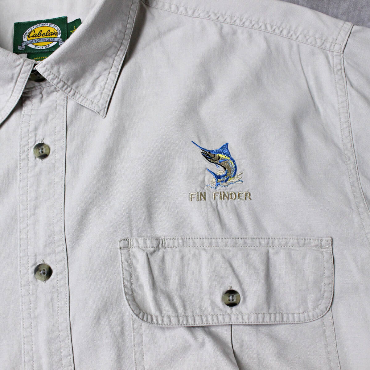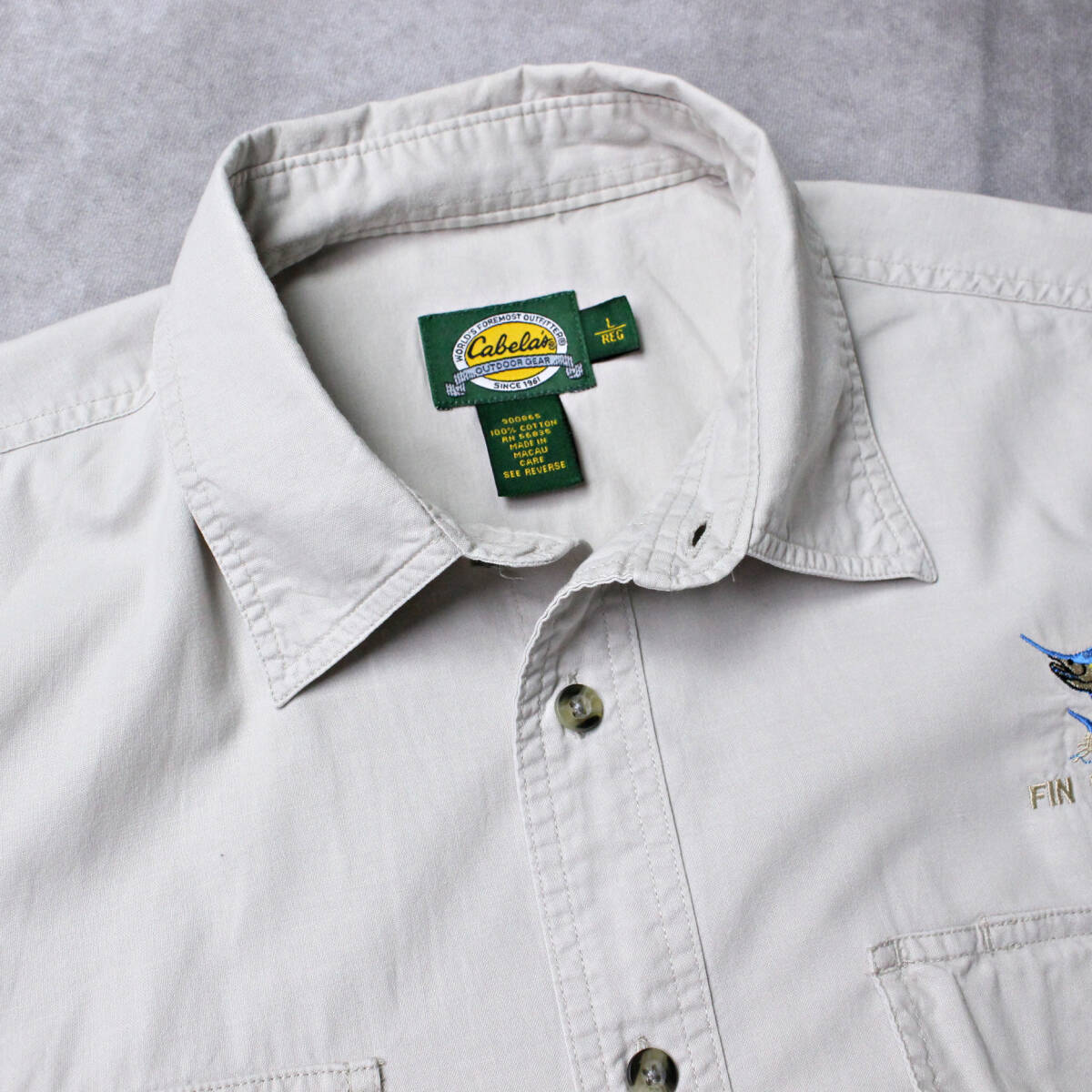【Cabela's】カベラス コットン 半袖シャツ キャンプシャツ カジキマグロ刺しゅう アウトドア