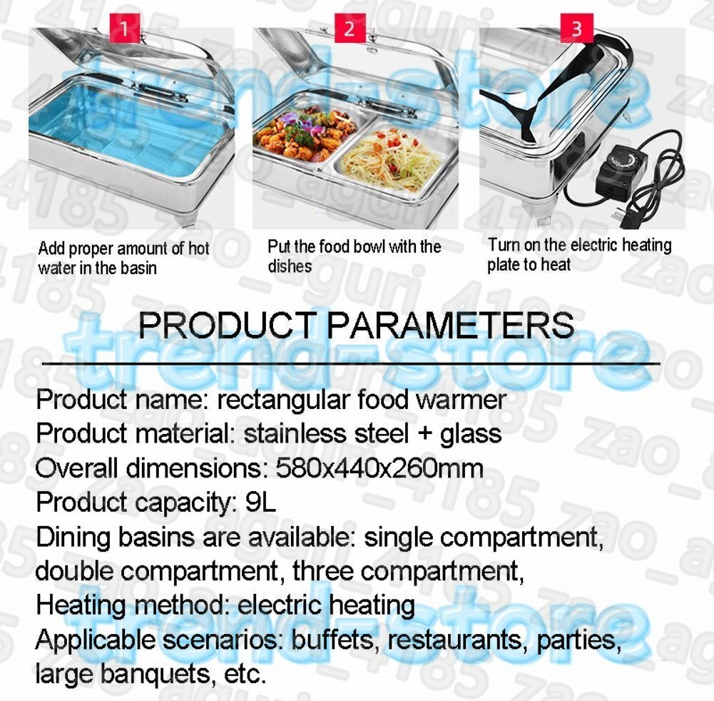 食べ物が冷えたためにパーティーを早く終了したことはありますか?食品の本来の風味に影響を与えずに、多くの人に温かい食品を提供する必要がありますか?◆このフードウォーマーは、食べる前に冷たくする代わりに、座って温かい食べ物を一度に食べることができます。そして、あなたがたくさんの食事を保存するのを助けることができます、パーフェクト温度は、食べ物を焦がさずに暖かく保ちます。クリスマス、感謝祭、サッカーシーズンに最適で、一日中食べ物を暖かく保ちます。◆このチェーファーは、フルサイズ、1/2サイズ、1/3のフードパンを使用して、さまざまな料理に対応できます。◆フードウォーマーセットは、耐久性に優れたステンレスフレームを採用し、長持ちします。◆プレゼント:ミニプレートとミールクリップ仕様:製品名:ビュッフェサーバー製品容量:9L / 8クォート商品サイズ:58×44×25cm製品素材:ステンレス鋼加熱方式:電気加熱プレート加熱プレート:フル、1 / 2、1 / 3サイズのフードパン製品電力:400W / 110V-220Vパッケージリスト:1×業務用フードウォーマー、ヒント:1.下部の洗面器に水を追加する必要があります。2.製品は10?20日以内に到着します。パッケージが30日以内に配達されない場合は、時間内にご連絡ください。