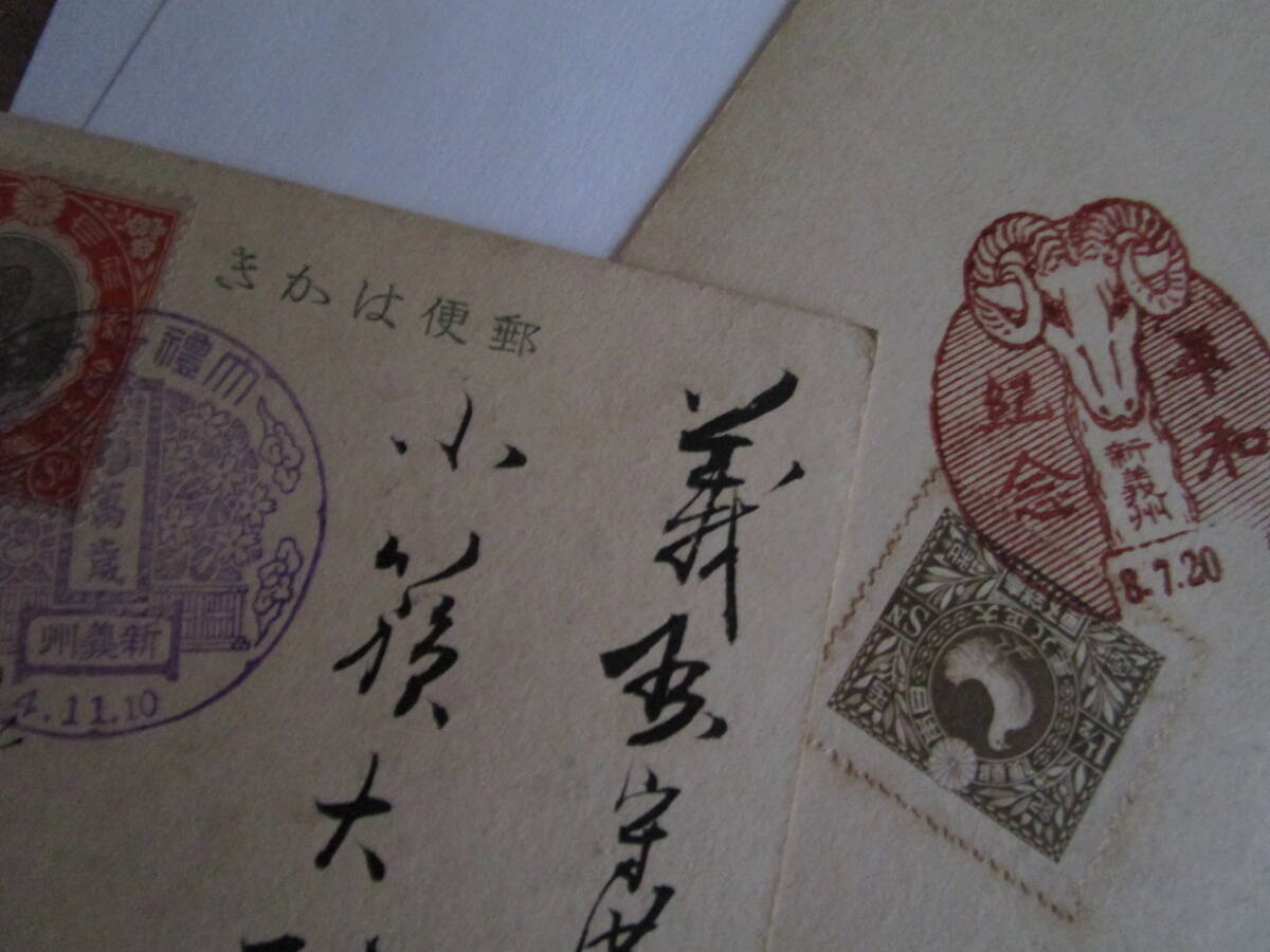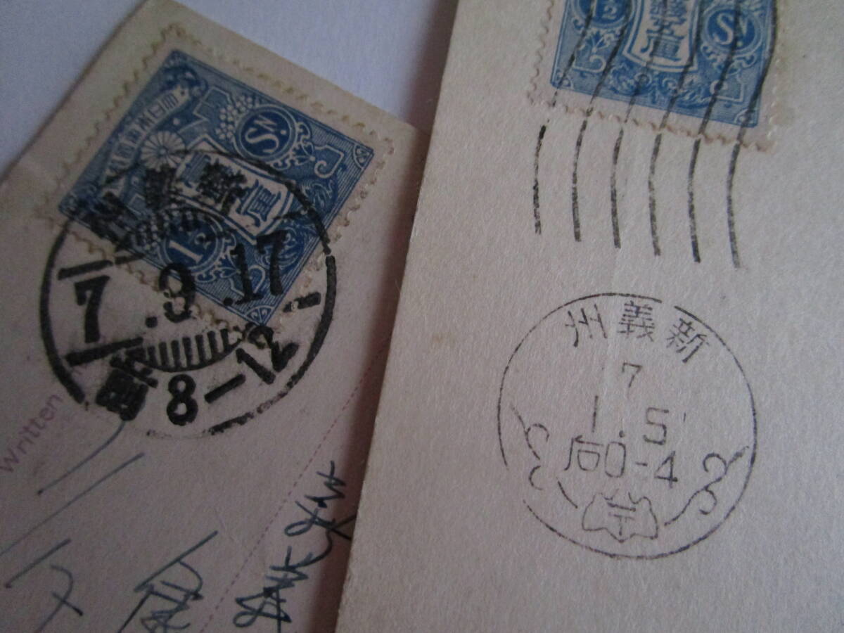 1、朝鮮総督府発行記念絵葉書大正大礼記念2種完の内【大饗宴太平楽の図】の切手面に記念切手1・5銭貼・記念特印新義州4・11・