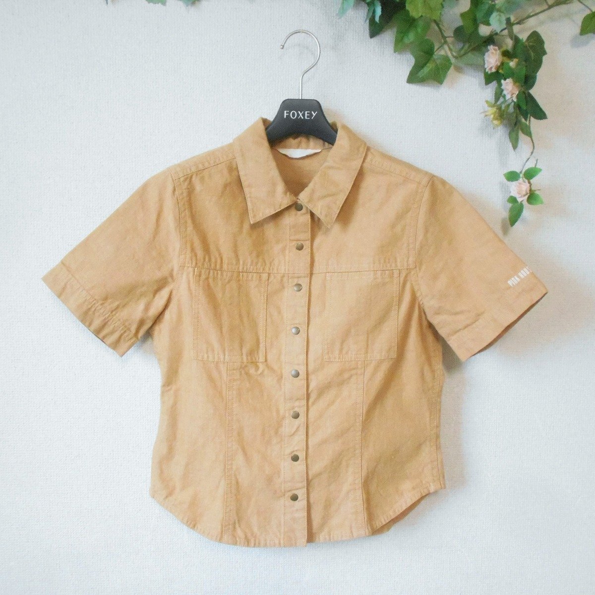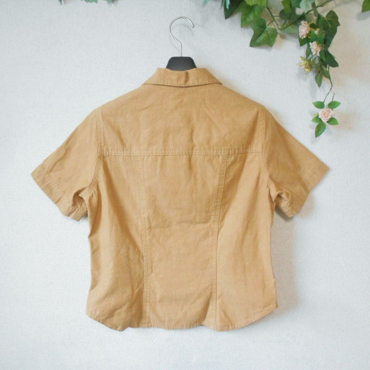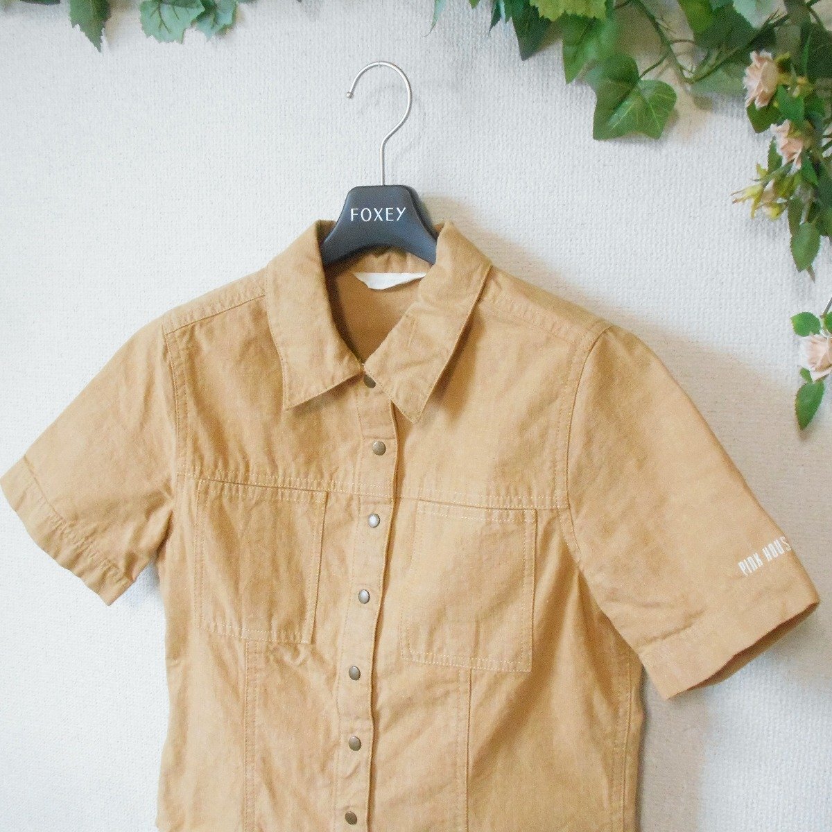 【ポイント】ピンクハウスのシャツのようなジャケットのようなトップスになります。お色は薄めのキャメルといった感じで、前はスナップになります。