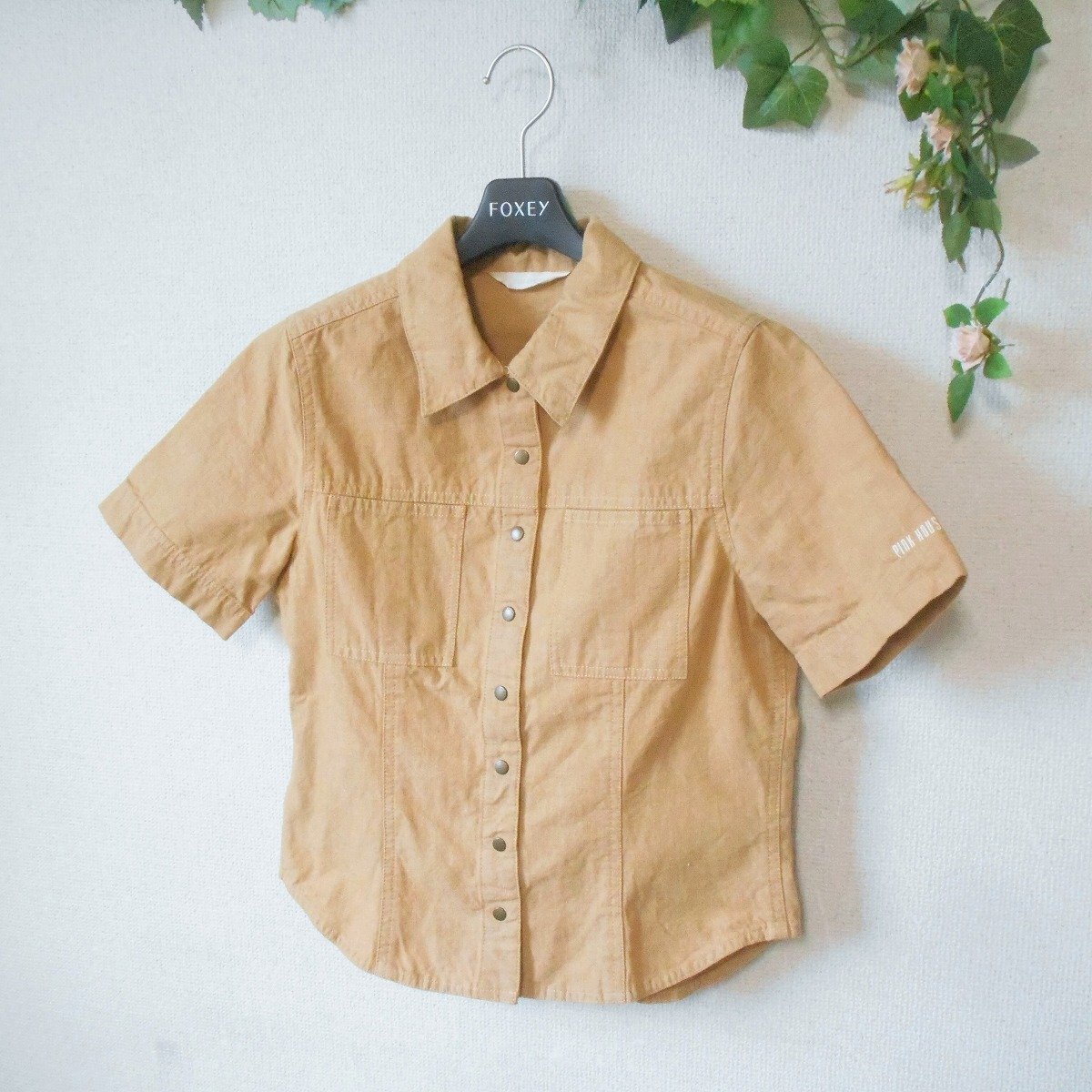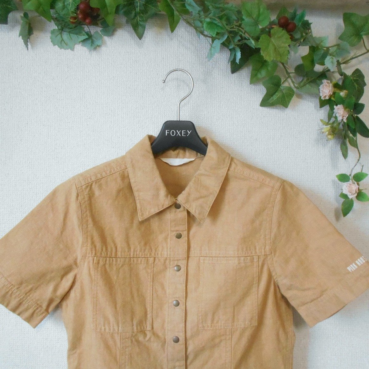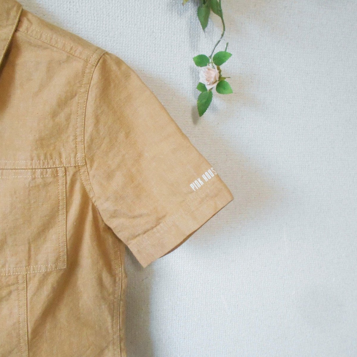 【ポイント】ピンクハウスのシャツのようなジャケットのようなトップスになります。お色は薄めのキャメルといった感じで、前はスナップになります。