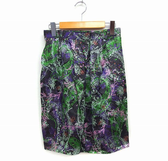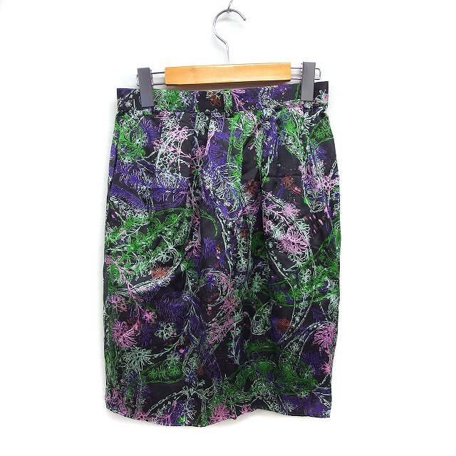 マカフィー MACPHEE トゥモローランド ペイズリー エキゾチック柄 タック タイトスカート ひざ丈 シルクブレンド コットン 綿 36 ブラック 黒 /FT11 レディース