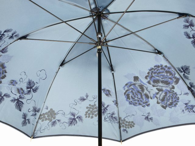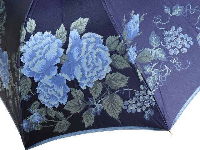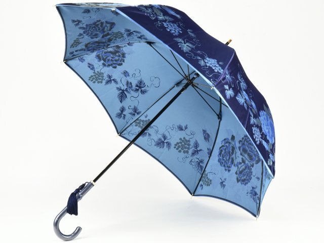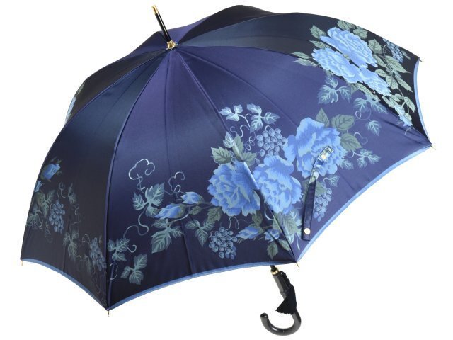 | 絵おり 薔薇と葡萄/バラとブドウ(ネイビー) 季節の花々を大胆に織り描いたジャガード織8本骨雨傘 |