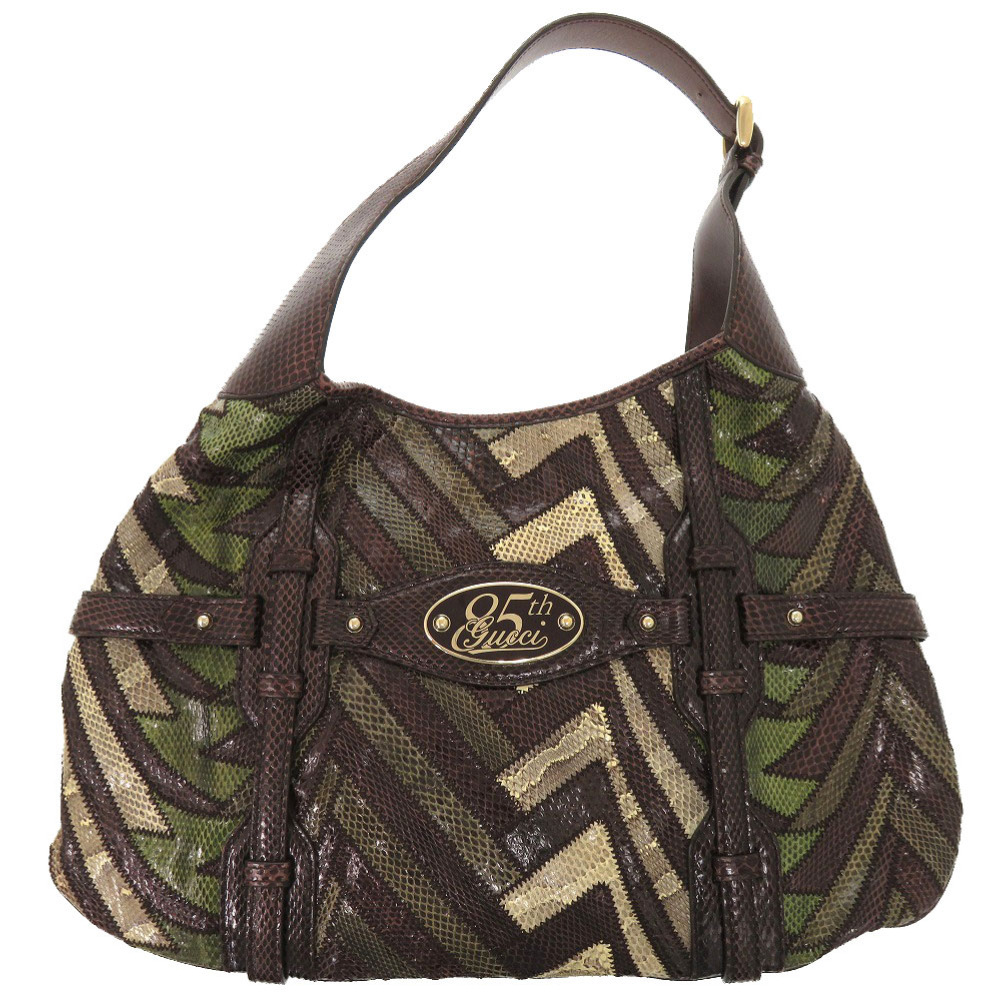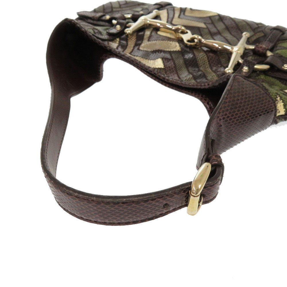 美品 グッチ 85th アニバーサリー 限定 ホースビット パイソン ブラウン カーキ 163804 ショルダーバッグ 0180 GUCCI