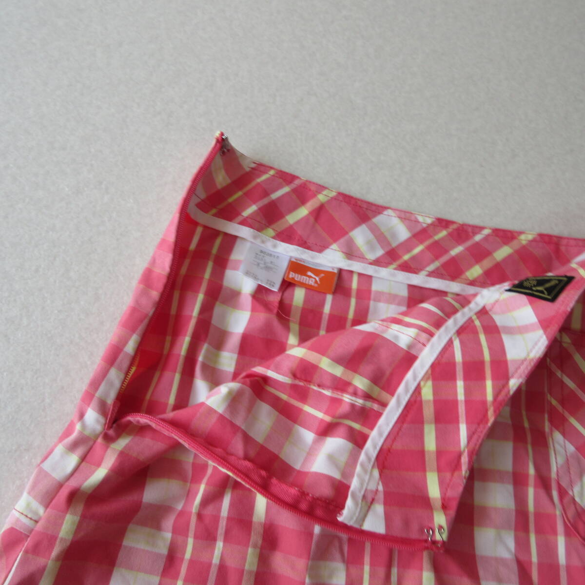 ○美品 PUMA GOLF プーマ ゴルフ◆ゴルフウエア スカート ショートスカート チェック柄◆メンズ ピンク系 Sサイズ