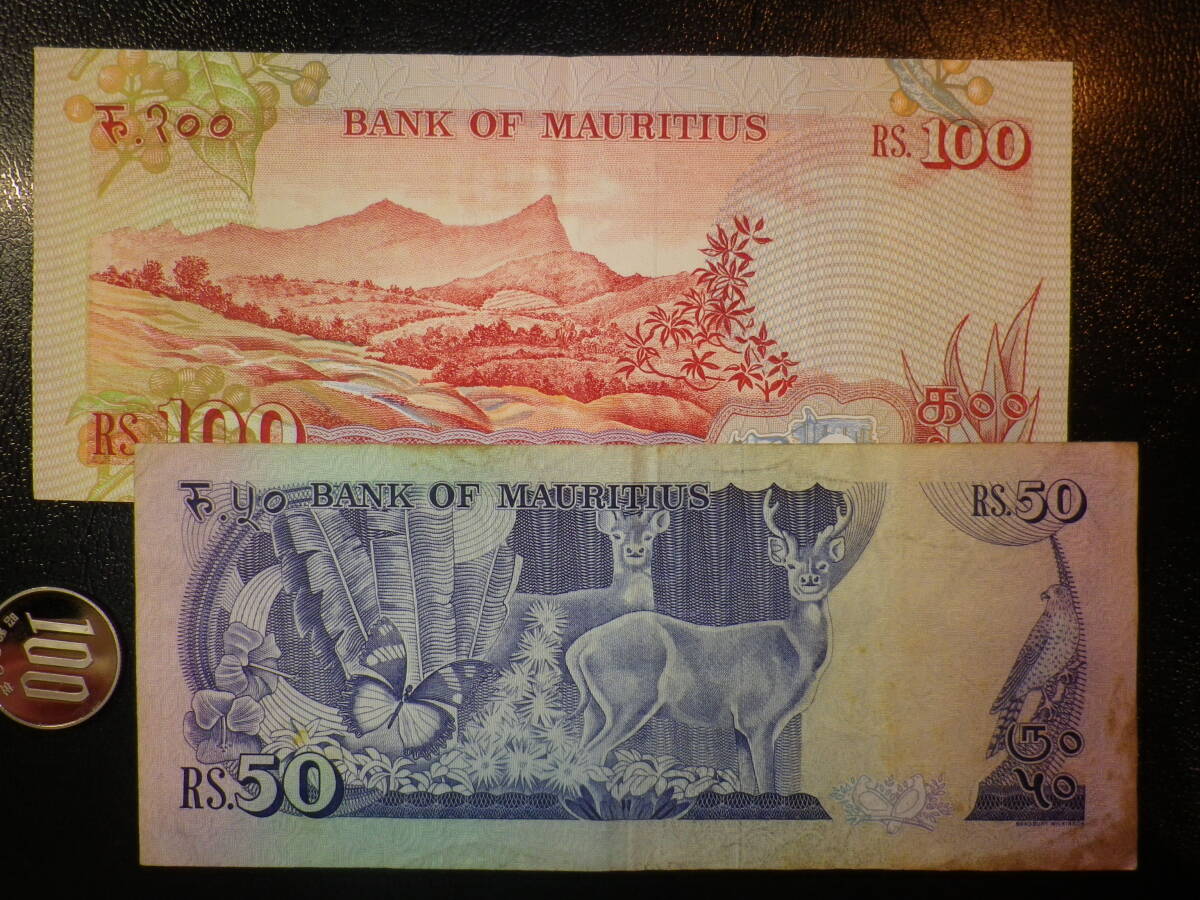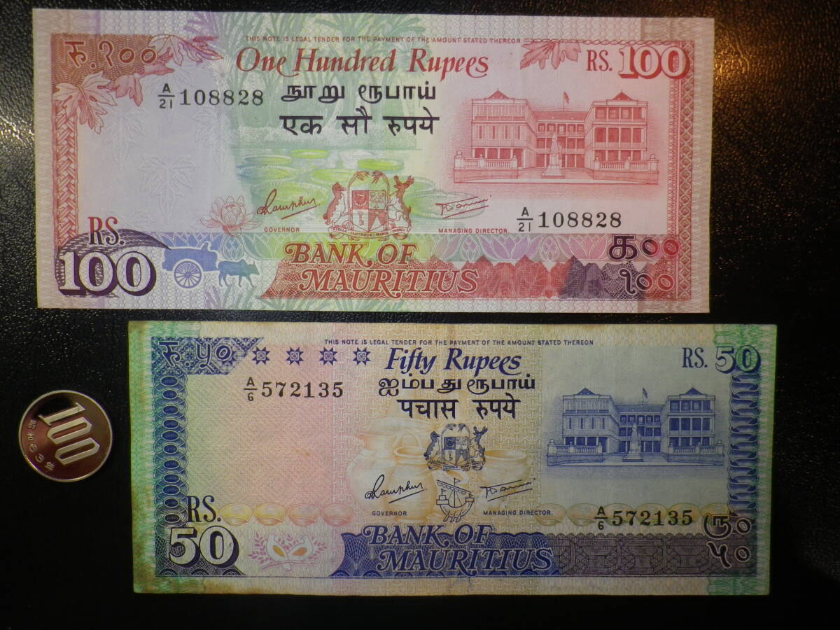 モーリシャス 1986年~ 100Rupees & 50Rupees 2種2枚 並品~美品