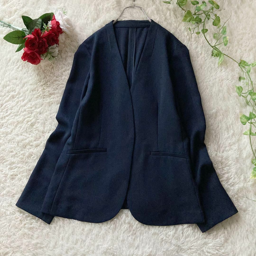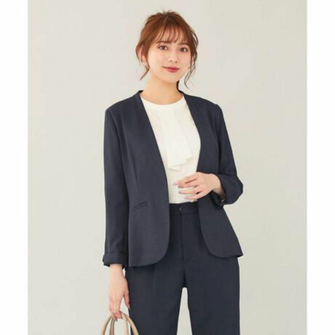 カラーレスタイプのスッキリとした襟で裏地無しのため軽く、少し暑くなった季節でも羽織りやすい仕様です。