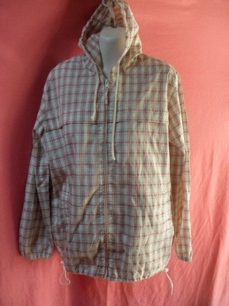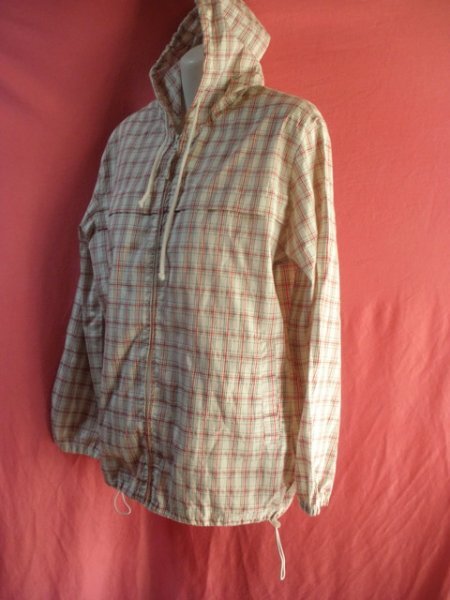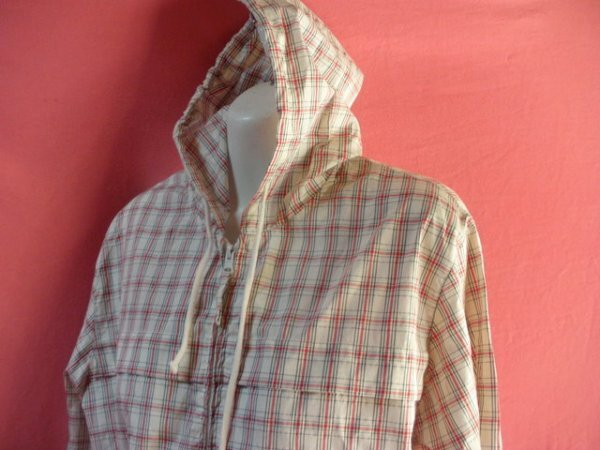 ・USED JK DESIGN フード付きジャンパー LL 赤/白/黒色です。