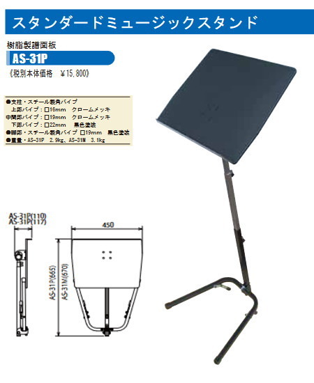日本製 スタンダード譜面台 OHASHI AS-31P