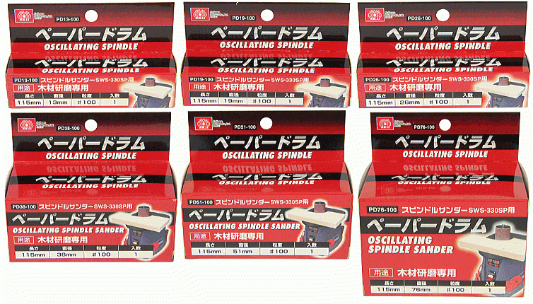 PD38-100 38mm | 幅38×高さ115×奥行き38mm 重量17g | ●サンディングドラム長さ:115mm ●サンディングドラム直径:38mm | |