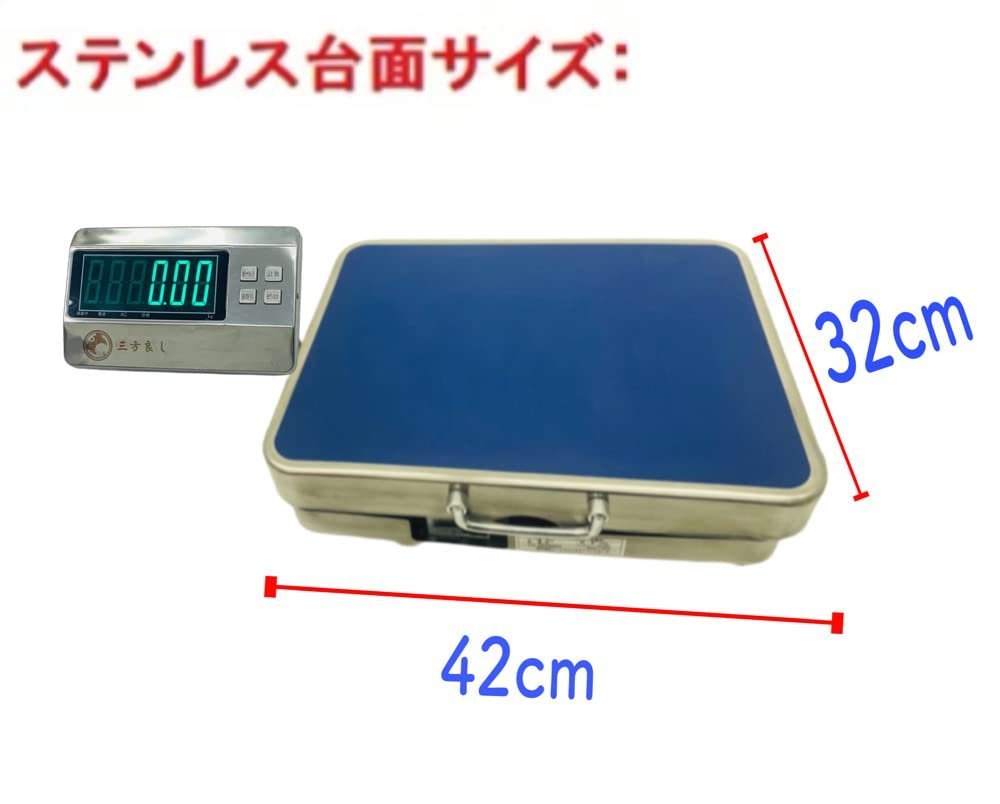安心半年保証付!<br>ワイヤレス式デジタル台はかり,モニター置く場所を自由に!専用バック掛ける可能,面倒な組立必要なし!<br>ステンレス製台面!持ち運び便利な取手付!<br> 最大測定可能重量100kg 最小測定可能重量0.2kg <br>  表示:LED表示(検定なし 注:正式な売買ご利用できません。 )<br>風袋引き:フルスケール<br> 台の大きさ:(約)32cm×42cmcm <br>重さ:約7kg  <br>電源:充電式<br>(AC100V 50/60Hz) バッテリー連続使用時間 48時間(フル充電時)<br> 作動温度:-10℃~+40℃ <br>リチャージャブルバッテリー:4V/4Ah<br> モニターと台面最大受信距離:直線約30mです。<br>注:本体防水ではありません。<br> 注意事項: ご利用する前に、本体台面の電源スイッチとモニター電源スイッチを入れる順番は必ず守ってください。<br> 電源オン:1.まず最初に台面の電源スイッチを入れてから、2.次にモニター電源スイッチを入れます。  電源オフ:1.先にモニター電源スイッチをオフしてから、2.次に台面の電源スイッチをオフします。 モニターと台面最大受信距離:直線距離約30mです,モニターと台面の間に障害物を置かないでください。 <br>
