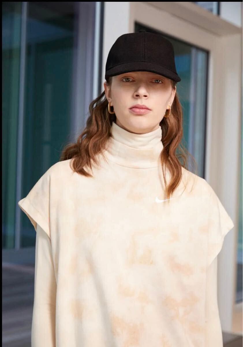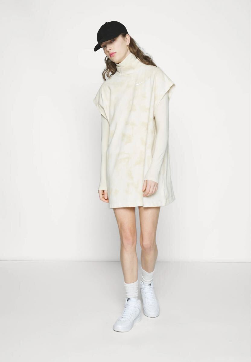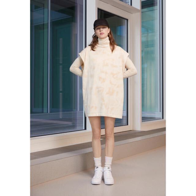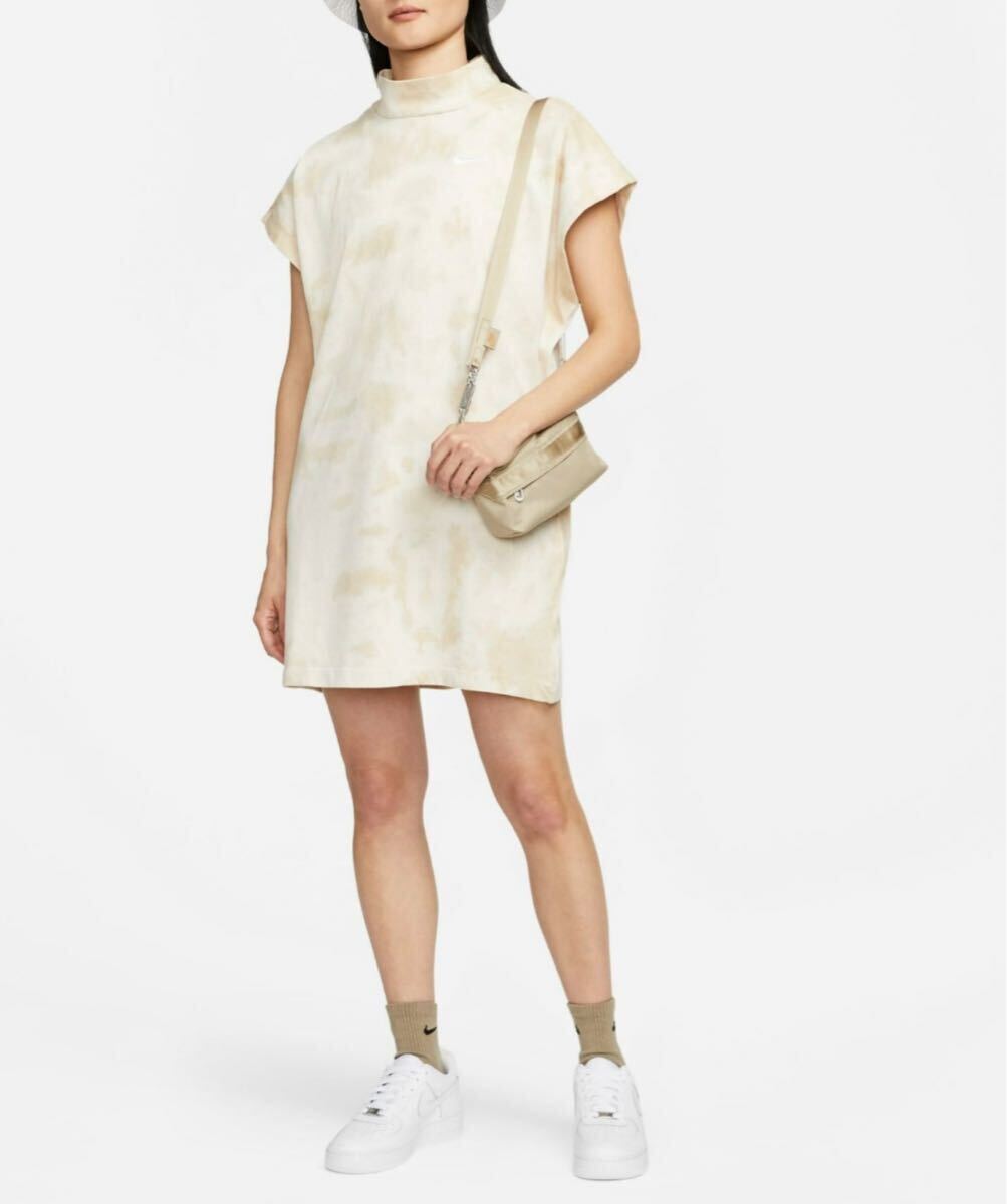 滑らかで丈夫な厚手のジャージー素材に、漂う雲を彷彿とさせる抽象的なデザインをあしらった、風通しの良い膝上丈ドレス。