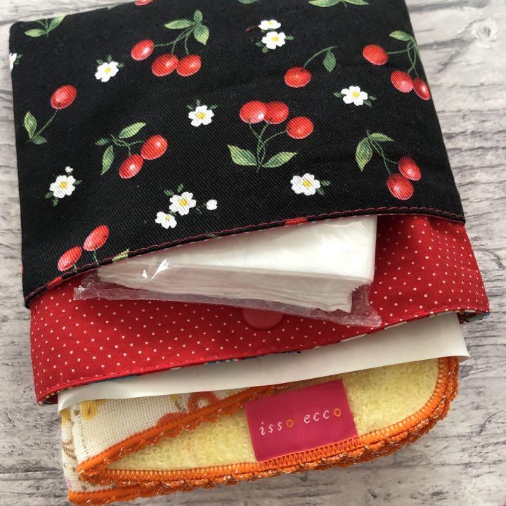 蓋なしの移動ポケットは、濡れた手でも蓋を濡らす事無く、サッとハンカチとティッシュを取り出すことが出来て便利です。