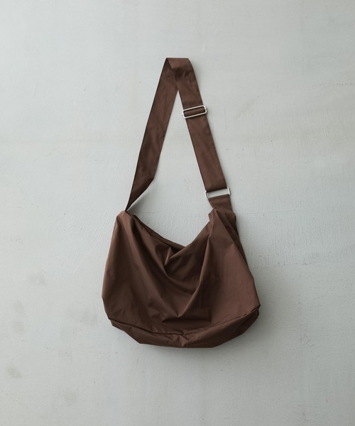 ☆新品 MONO-MART ナイロンショルダーバッグ ワイドストラップ ビッグ ブラウン ベージュ ボディバッグ モノマート ワンショルダー バック