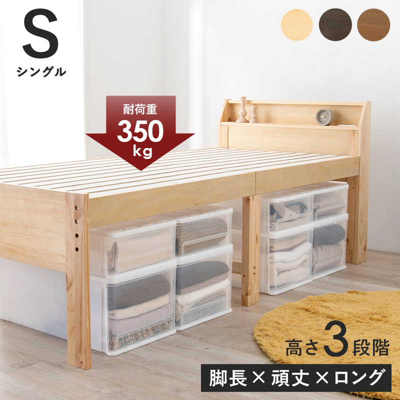 天然木パイン材を贅沢に使用した静止耐荷重350kgの頑丈な木製ベッド。