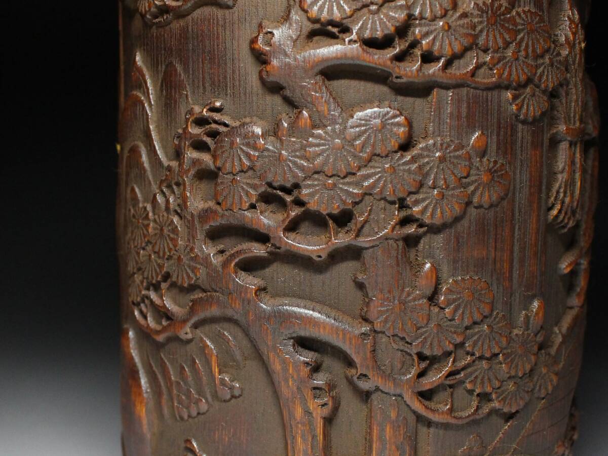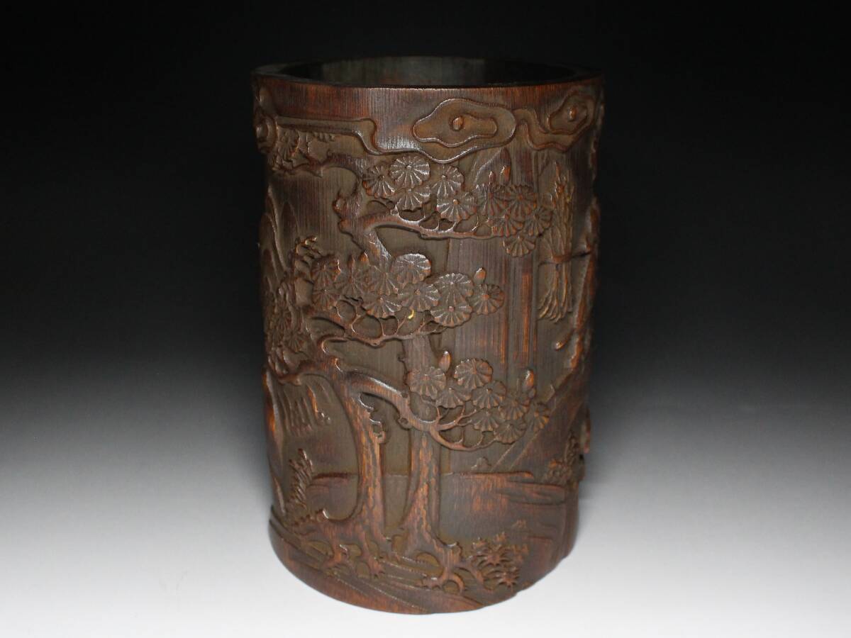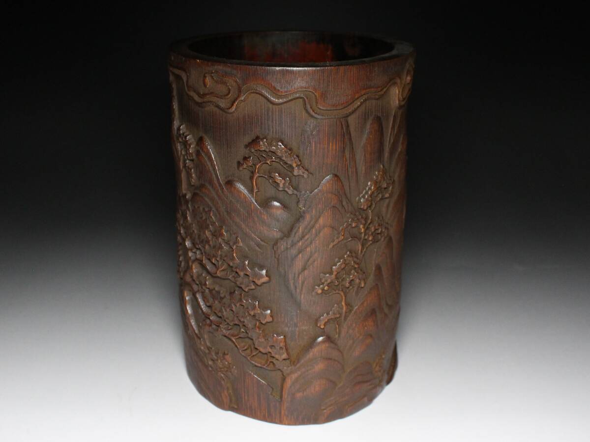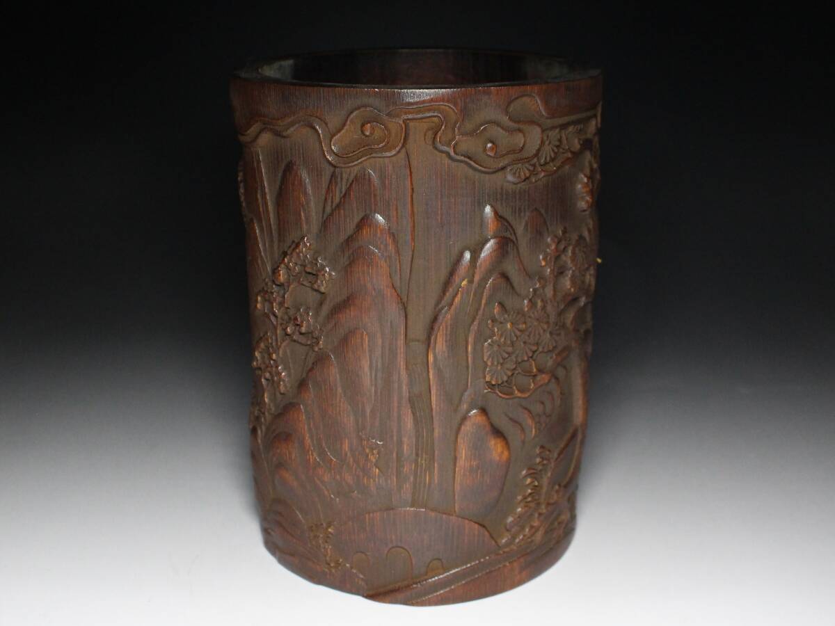 | ■中国古玩■古竹・筆筒・筆立・人物山水図紋・盛上彫・超細密細工・書道具・唐物・f2126h | ||||||||||||||||||||