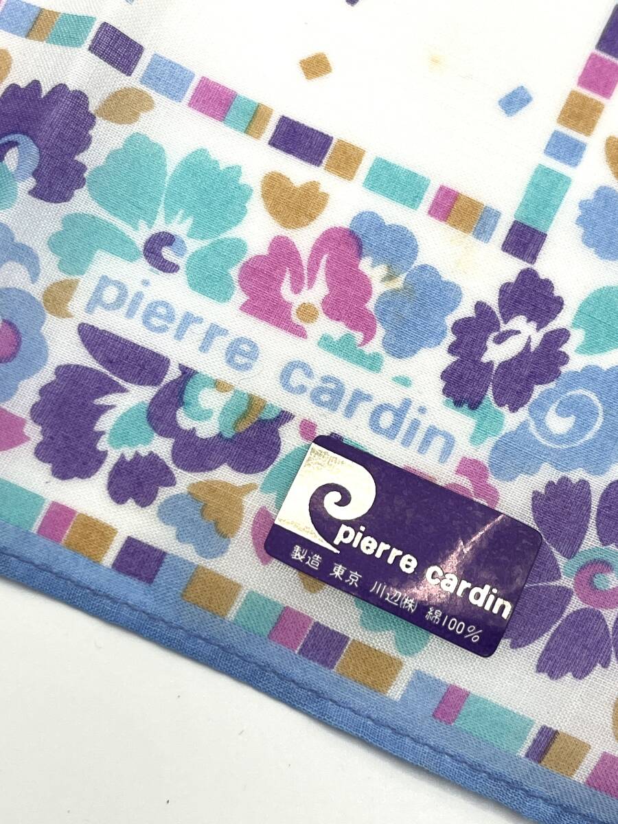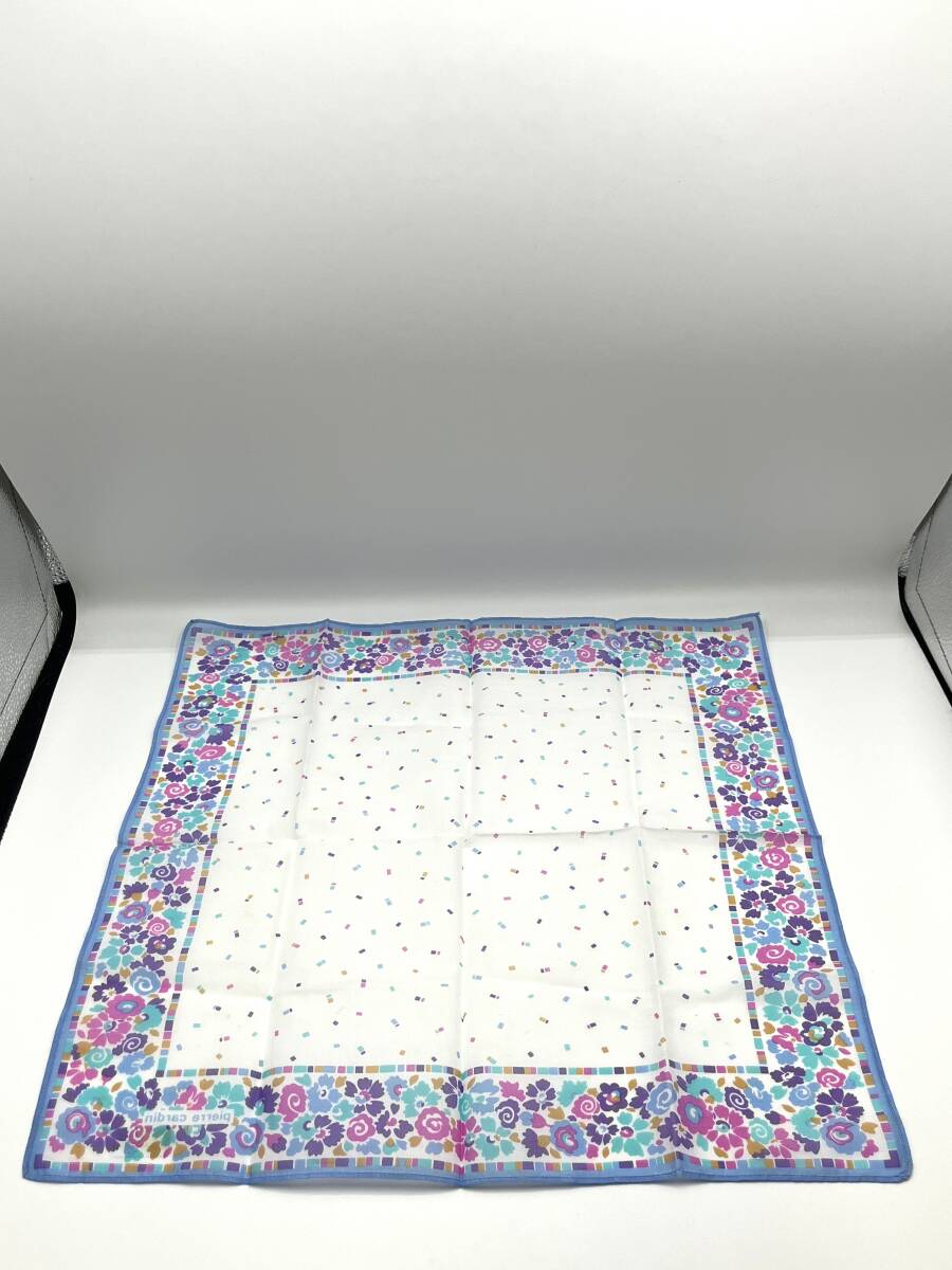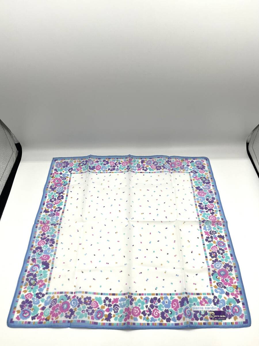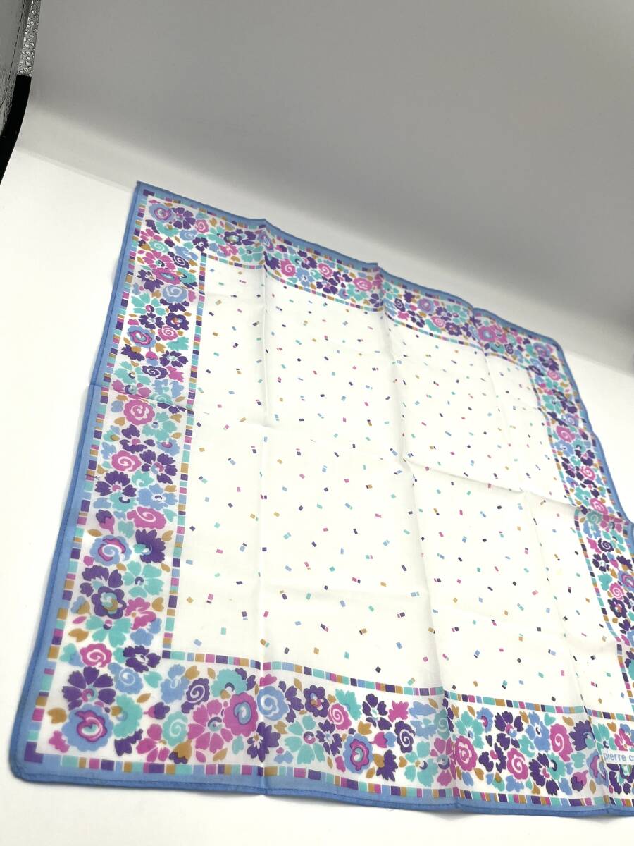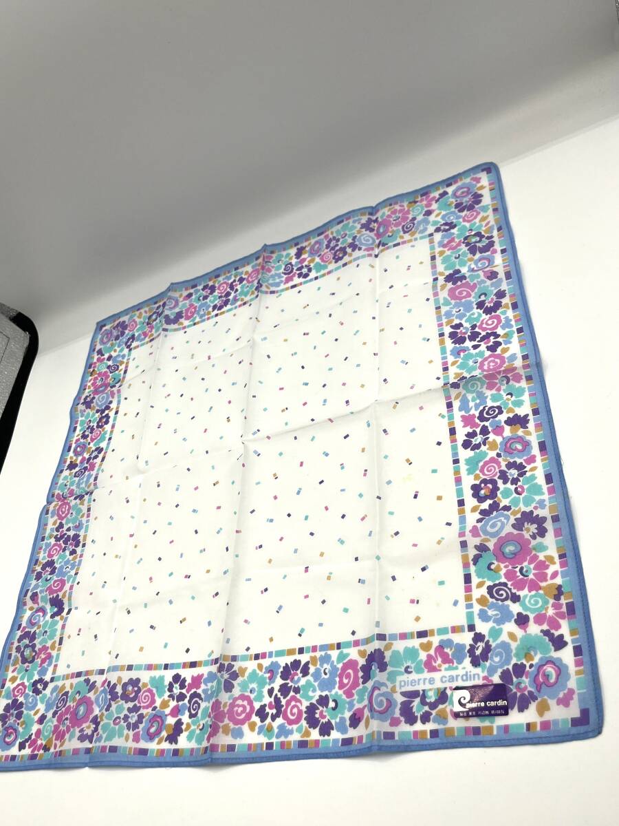 【未使用品】 pierre cardin ピエールカルダン ハンカチ バンダナ ライトブルー系 花柄 カラフル コットン