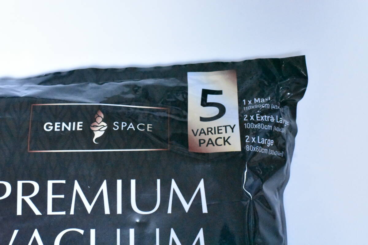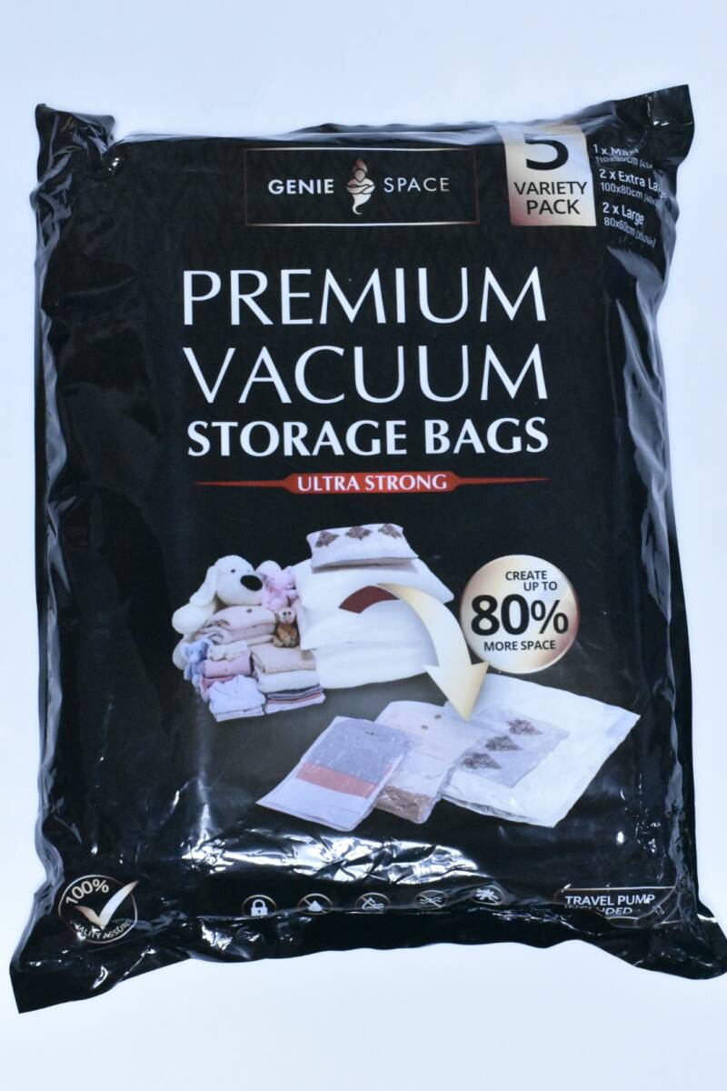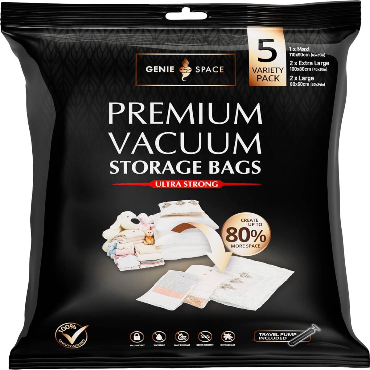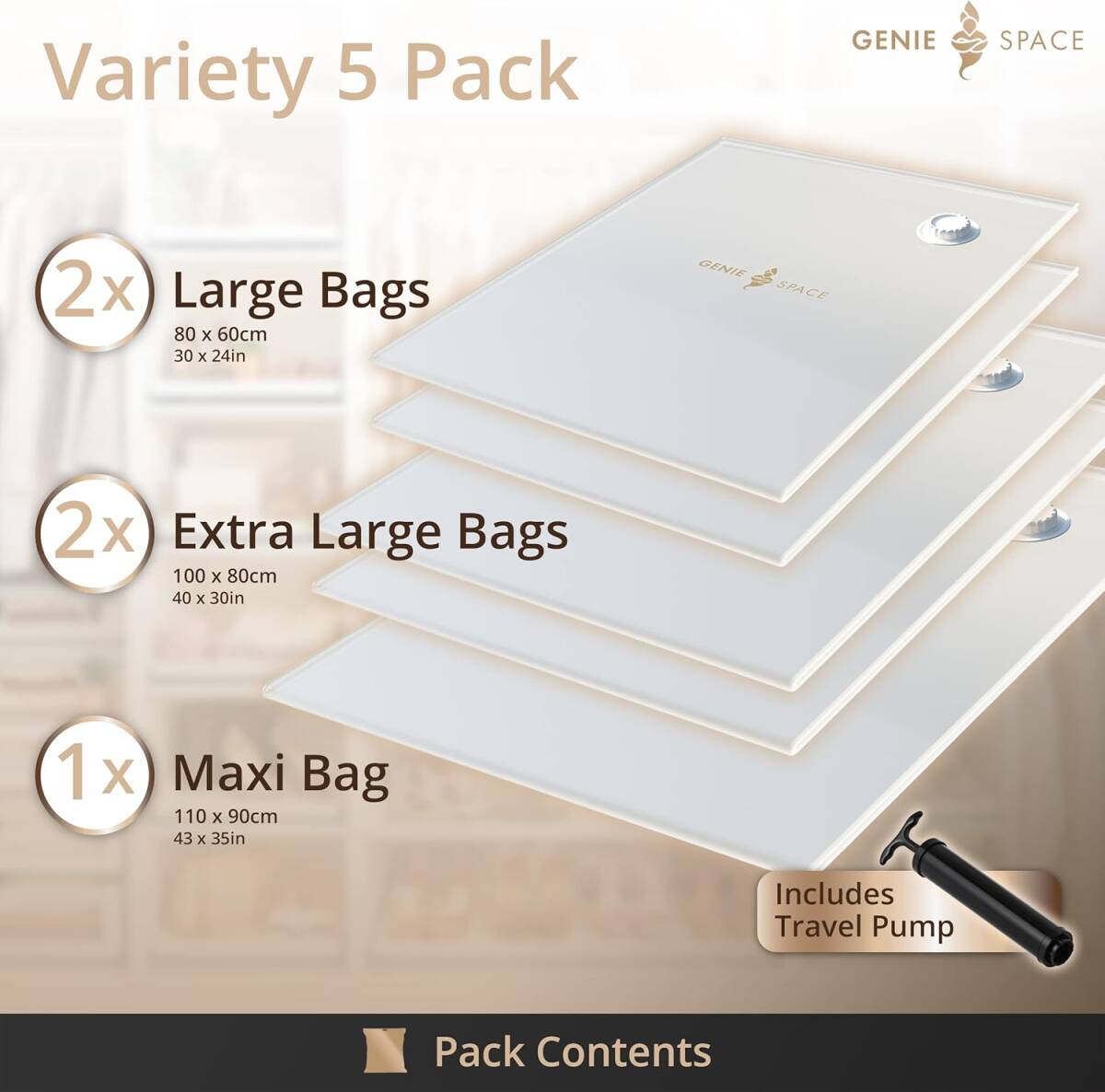 GENIE SPACE -超強力プレミアム真空圧縮収納バッグ | バラエティ 5 パック (1MX+2XL+2L) | /S102