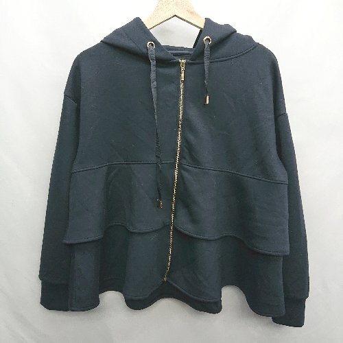 ◇ a.v.v アー ヴェ ヴェ フード フリル ジップアップ 長袖 パーカー サイズM ネイビー レディース E