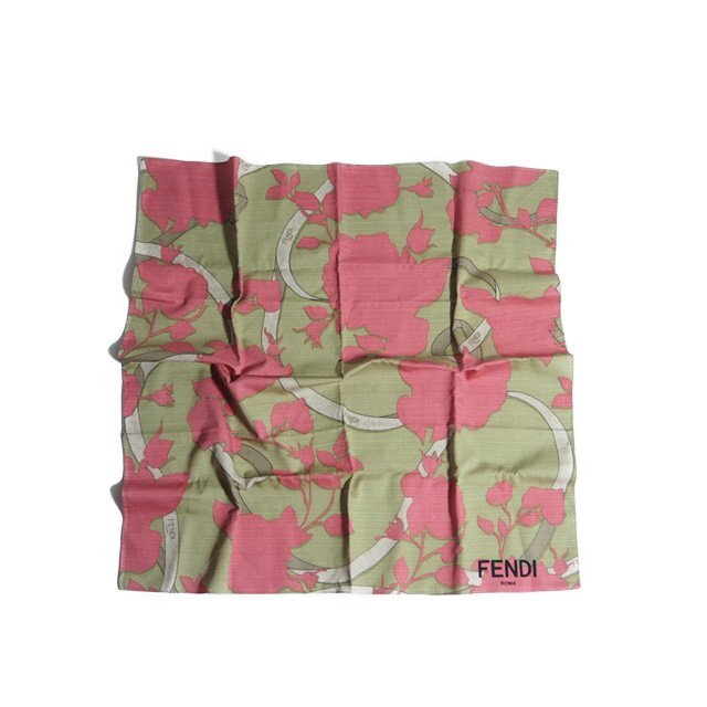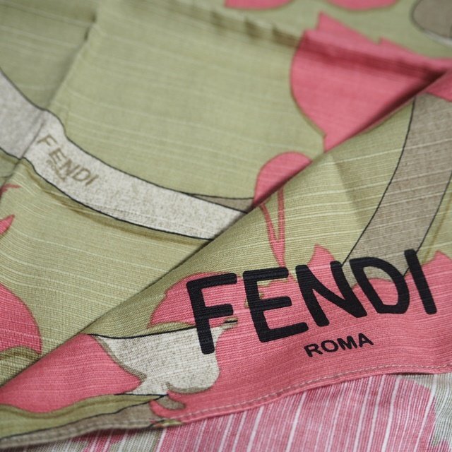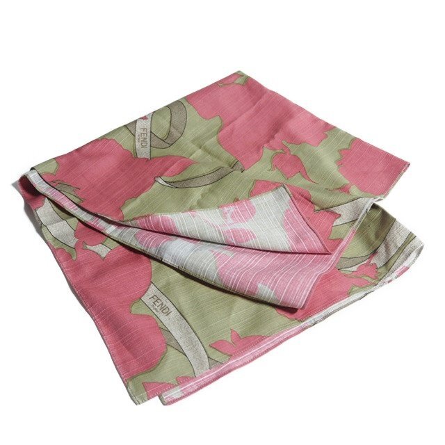 M7953f13 ▼FENDI フェンディ▼ フラワープリント ノベルティ スカーフ ベージュ / 非番品 花柄 春~秋