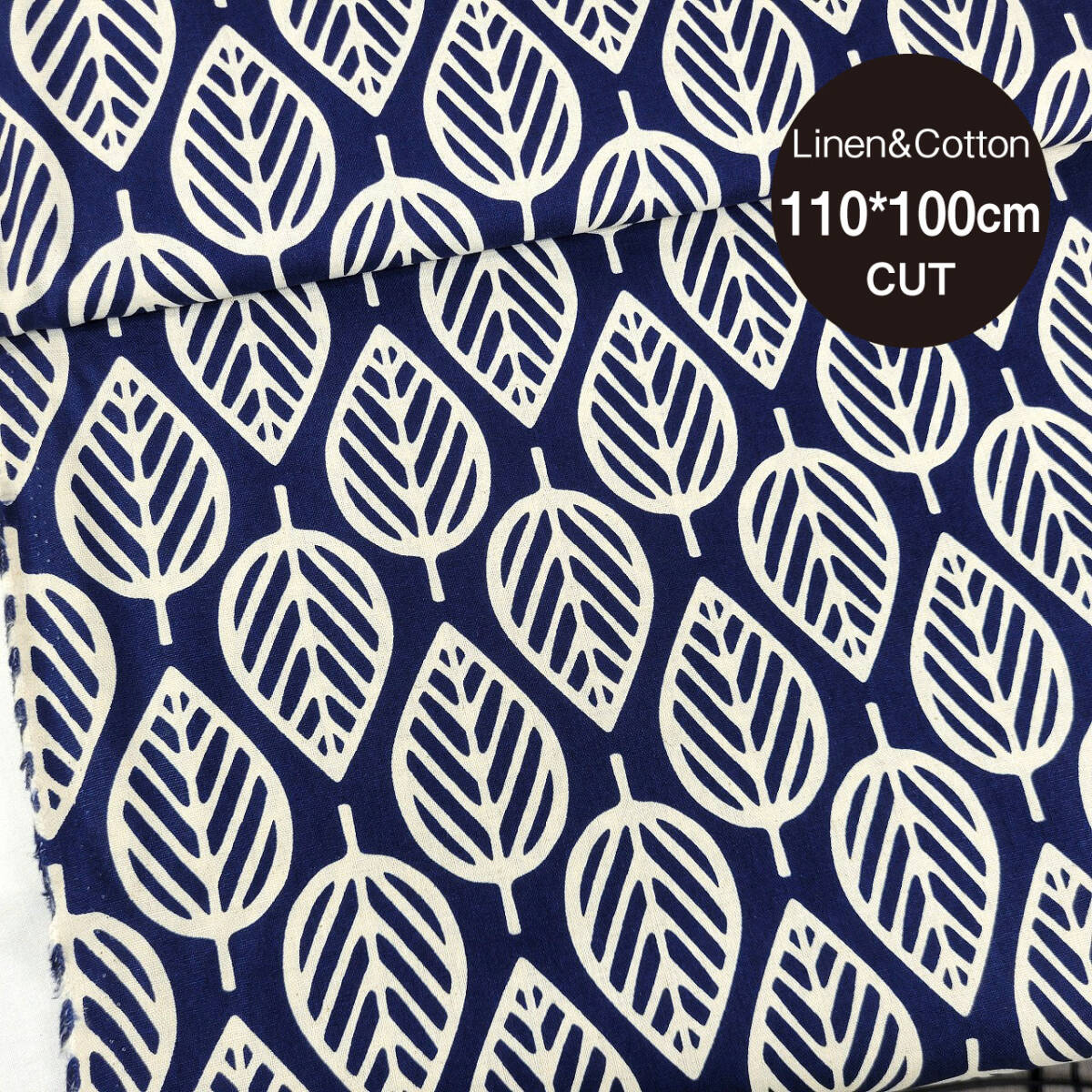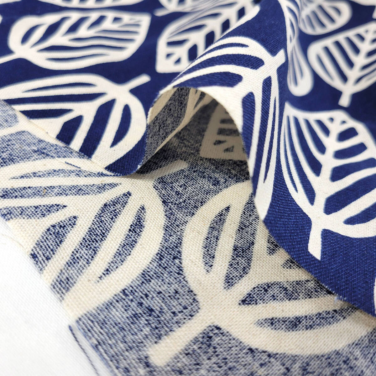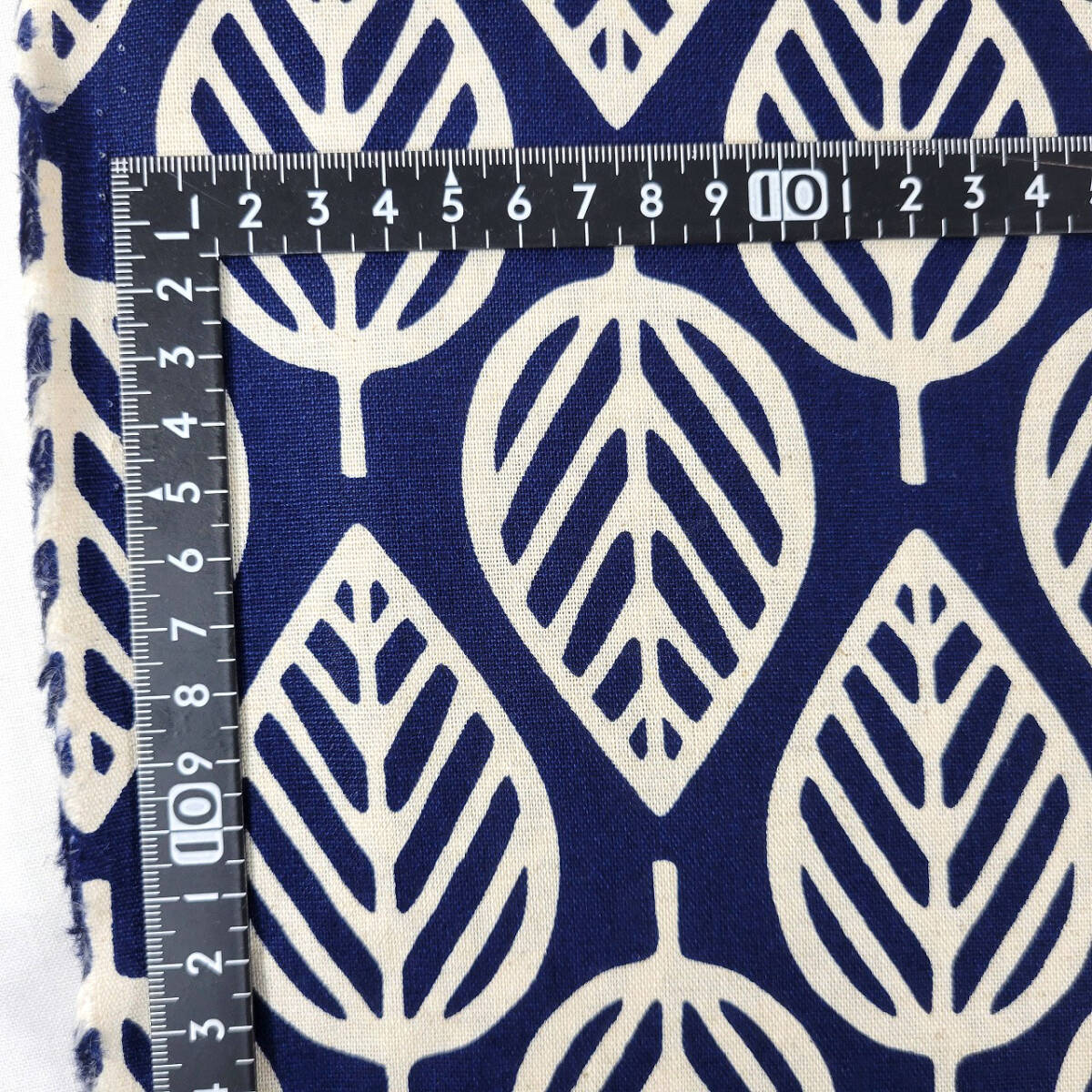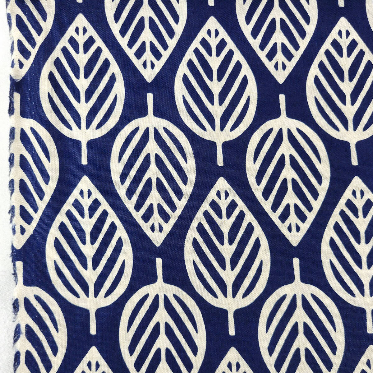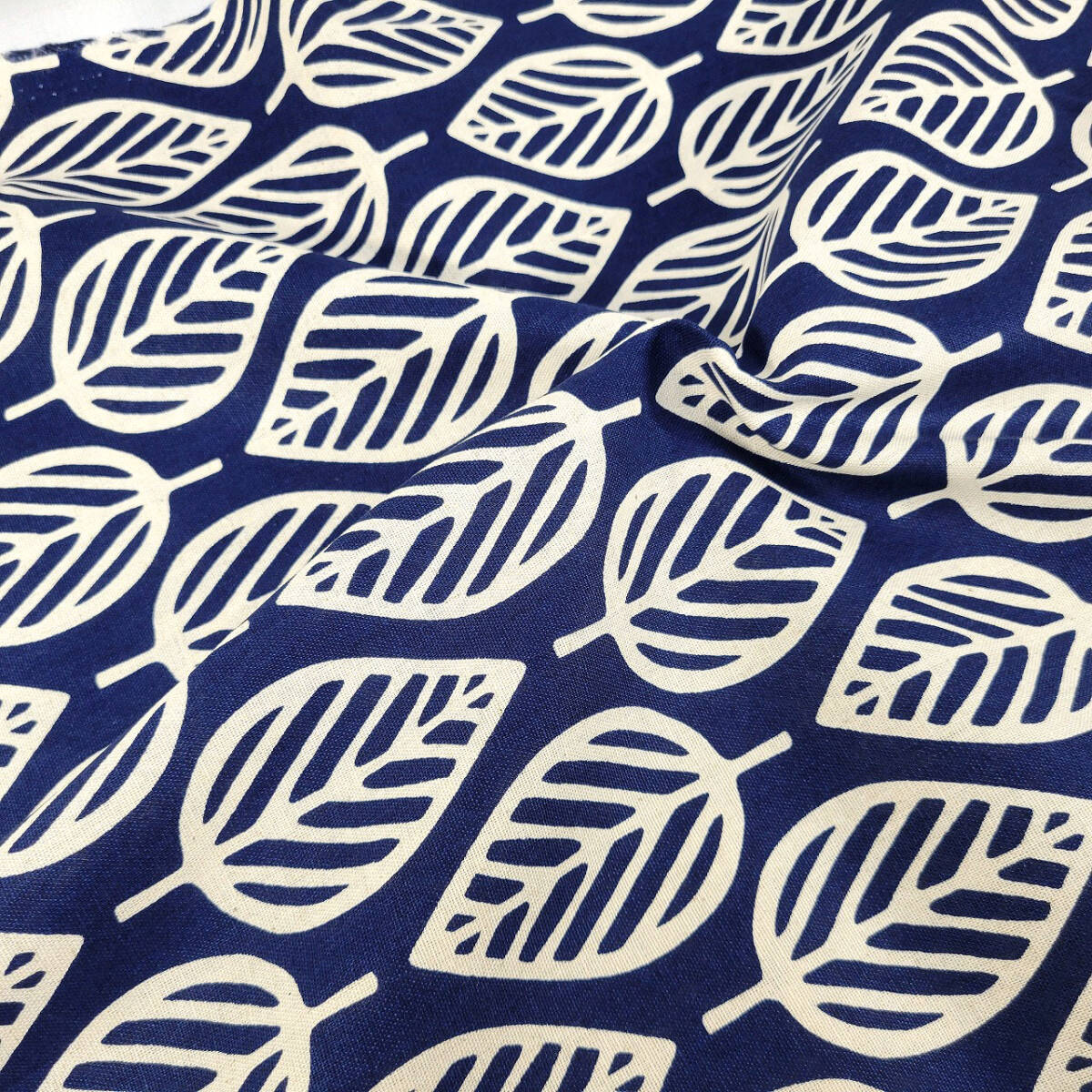 北欧風リーフ柄 綿麻キャンバス生地 #ネイビー 幅110*100㎝