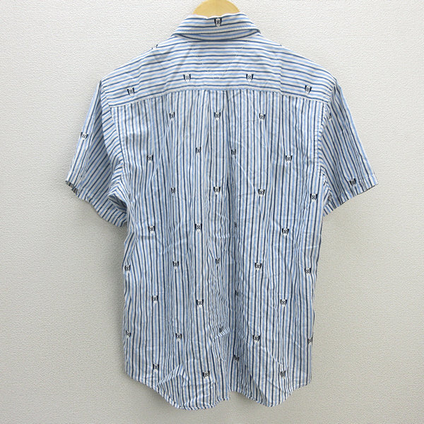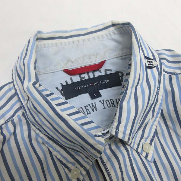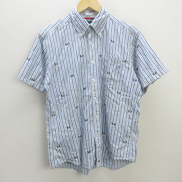 D■トミーヒルフィガー/TOMMY HILFIGER ストライプ柄 半袖シャツ【L】白青/MENS/146【中古】