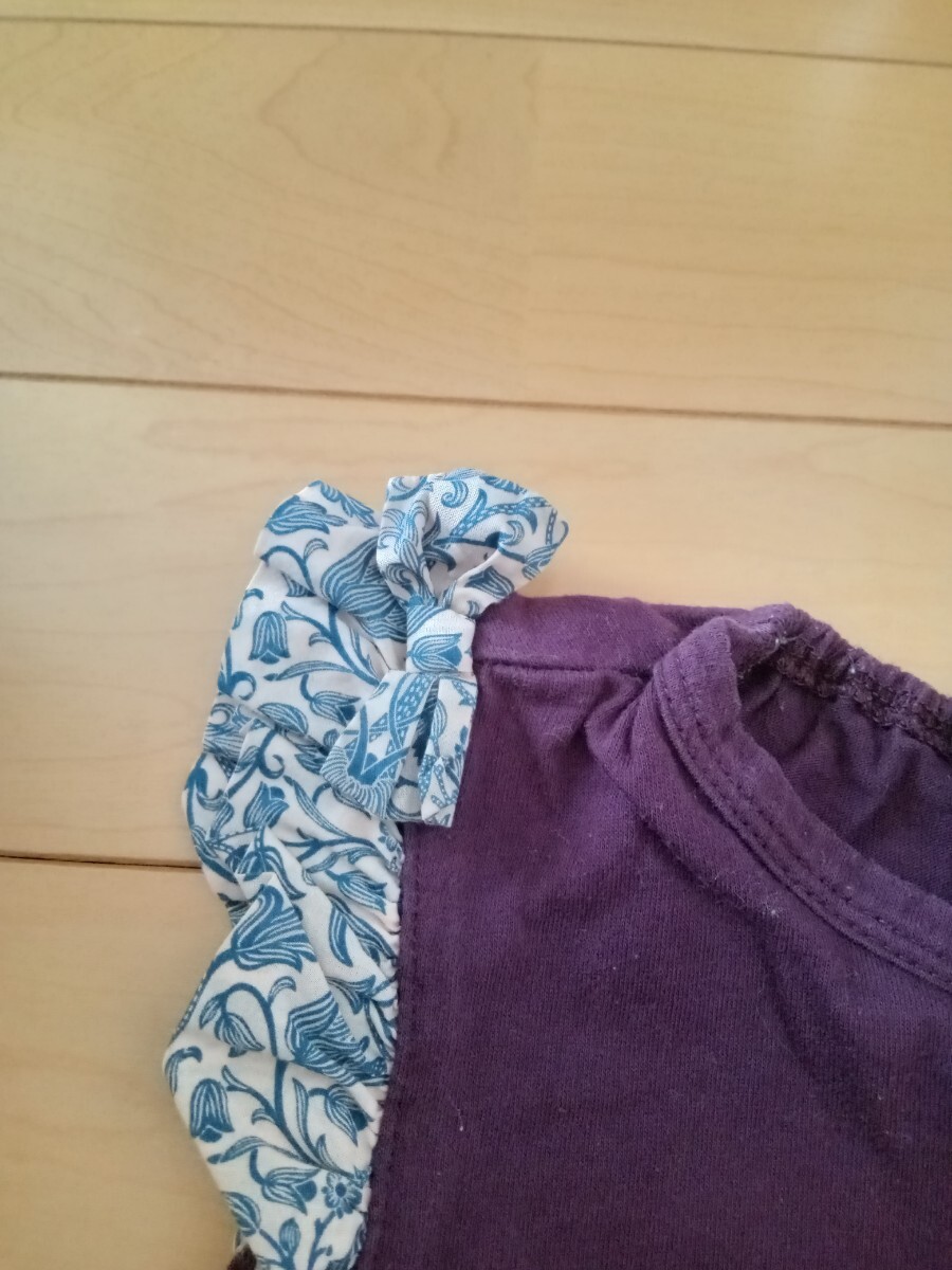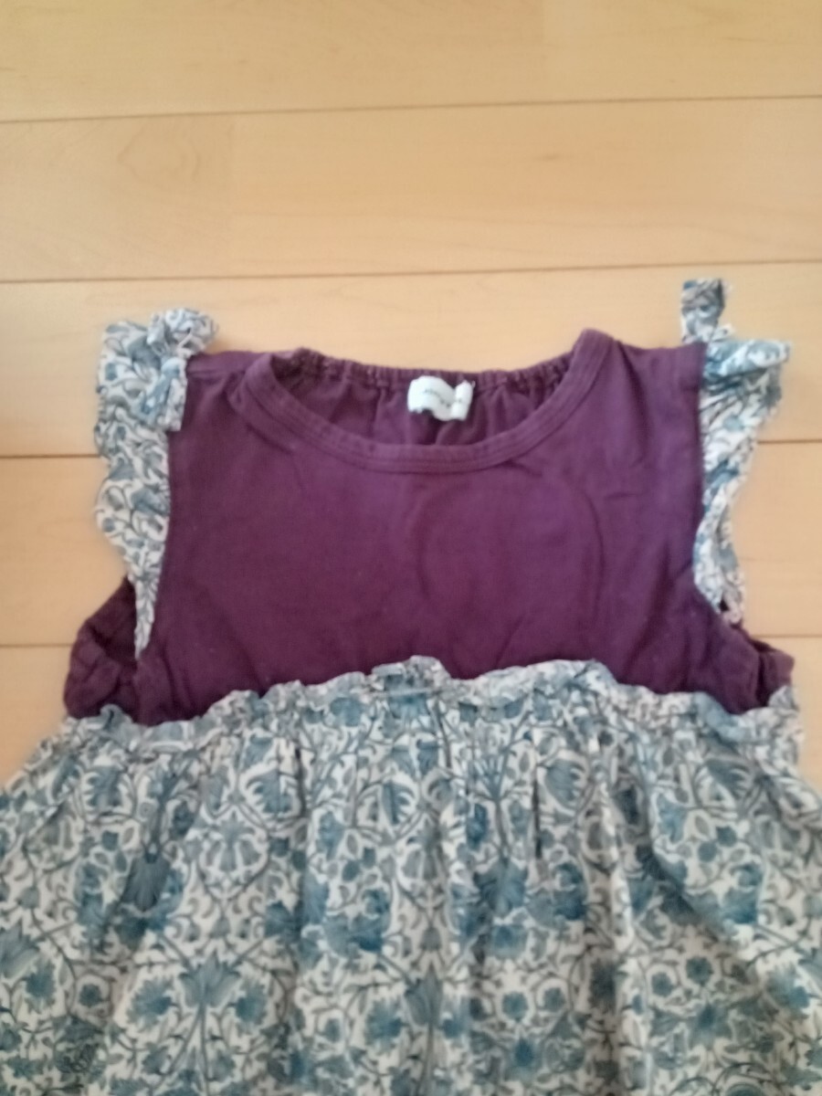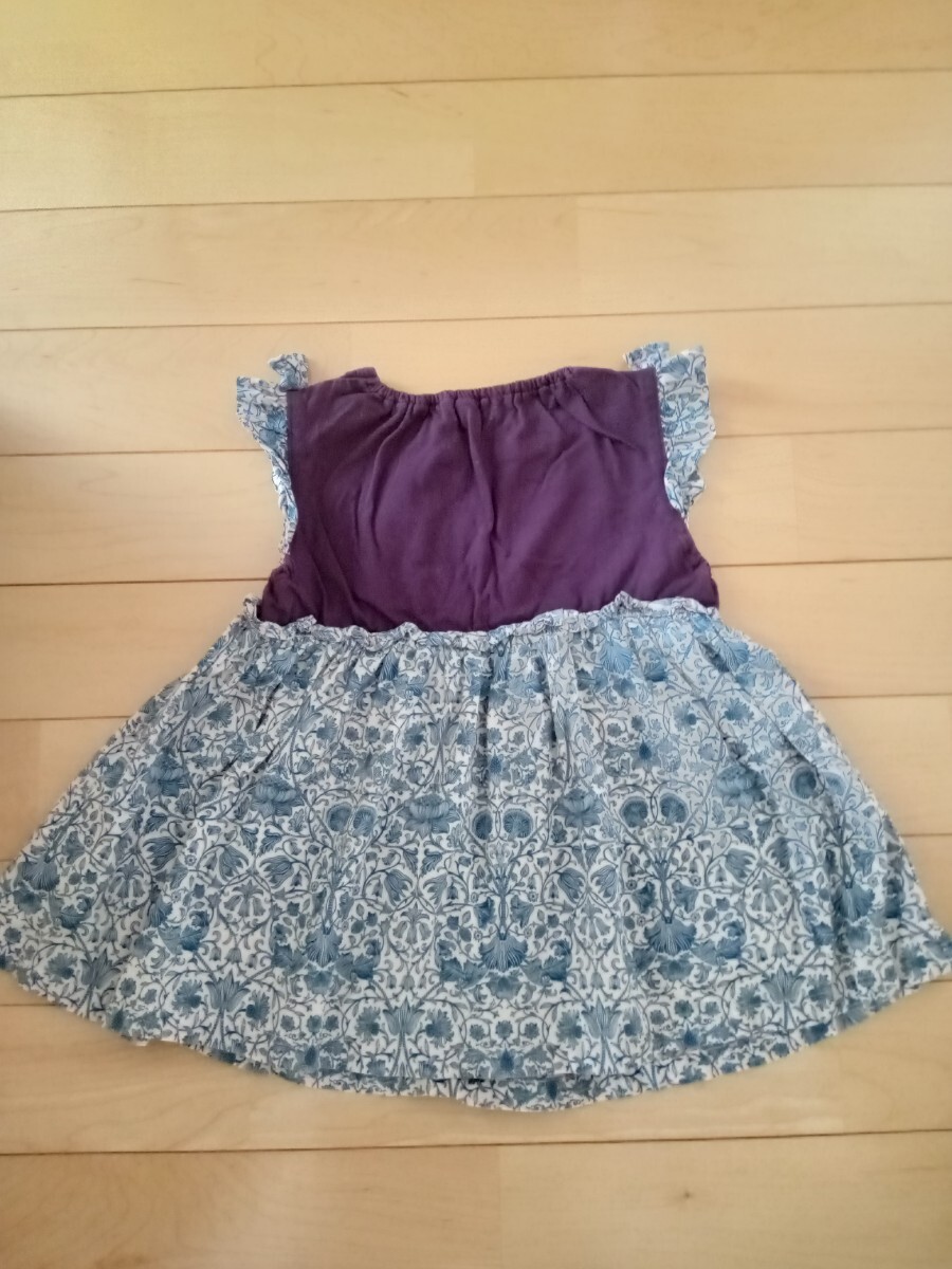 落ち着いたリバティで、肩にも小さなリボンが付いていたりと、とてもかわいいです。