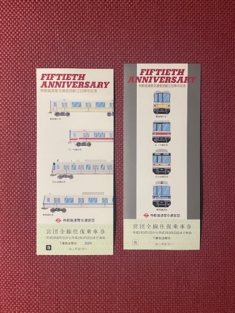 帝都高速度交通営団創立50周年記念乗車券 (管理番号42-22)