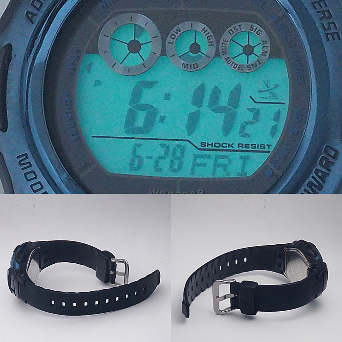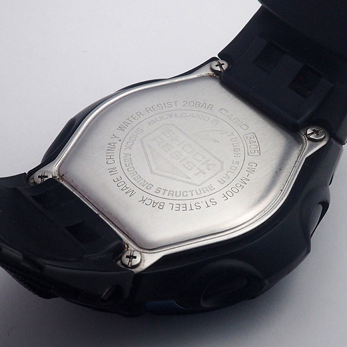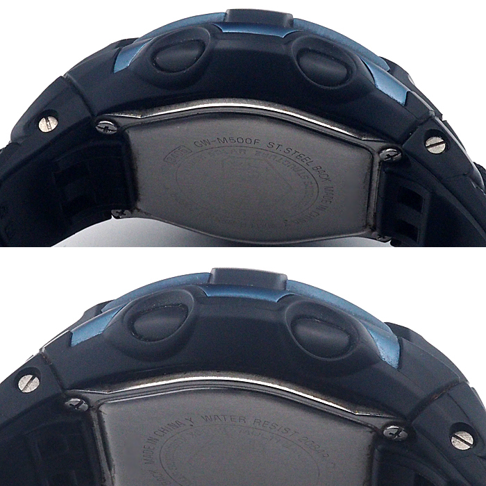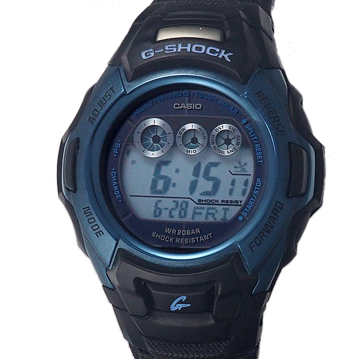 備考:視認性の高いデジタル表示のGW-M500をベースにブラックとスカイブルーで仕立て、世界6局の標準電波に対応したマルチバンド6やタフソーラーを搭載した一本です。ベゼル・裏蓋・尾錠などSS地とバンドにスレが見られます。ガラスにわずかな傷がございますが、視認性に問題はございません。大きく目立つような傷はなく、状態の良いお品物としてお使いいただけるかと思います。