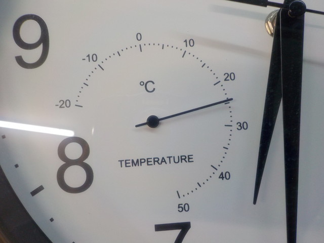 TIN R2●○(6)掛け時計 壁掛け時計 丸型 温度計付き 茶計 5-7/7(こ)
