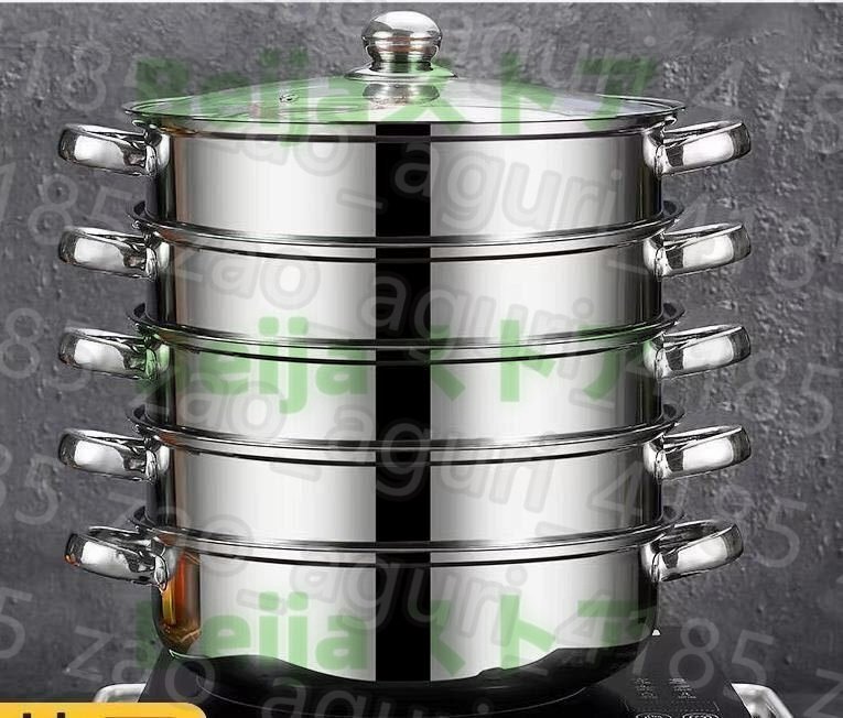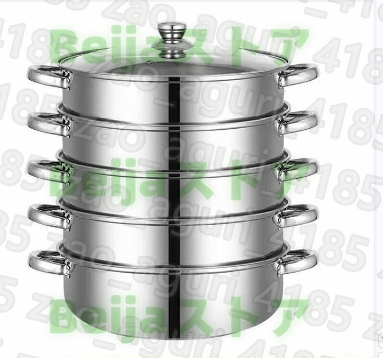 蒸鍋34cm「5層」対応熱源:IH対応 各種熱源対応 ガラス鍋蓋付 中華 肉まん 蒸し器
