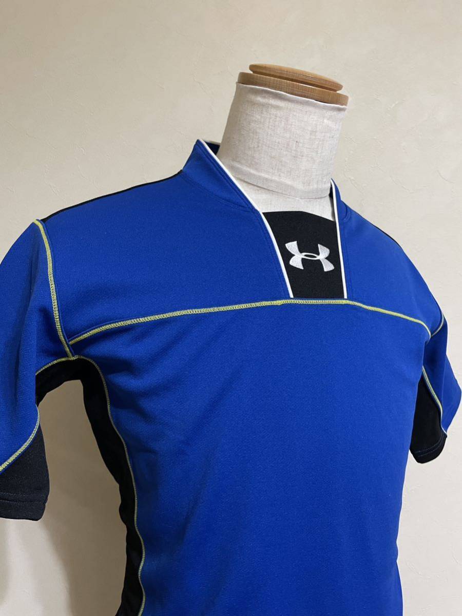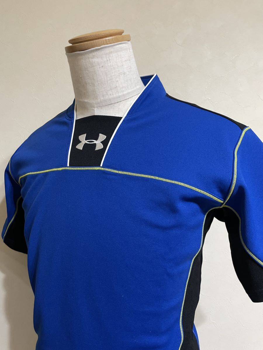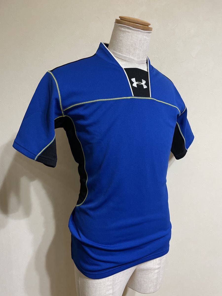 【美品】 UNDER ARMOUR アンダーアーマー ラグビー ジャージ トレーニング ウェア トップス サイズLG 半袖 青黒 MRG5439