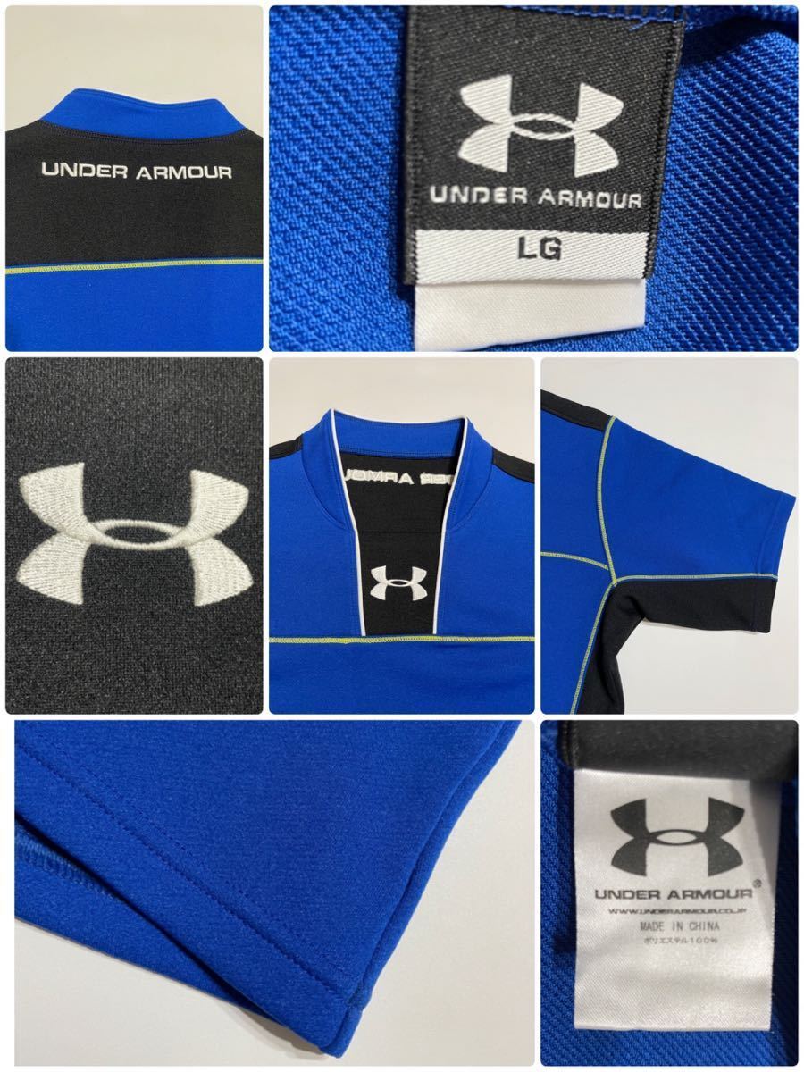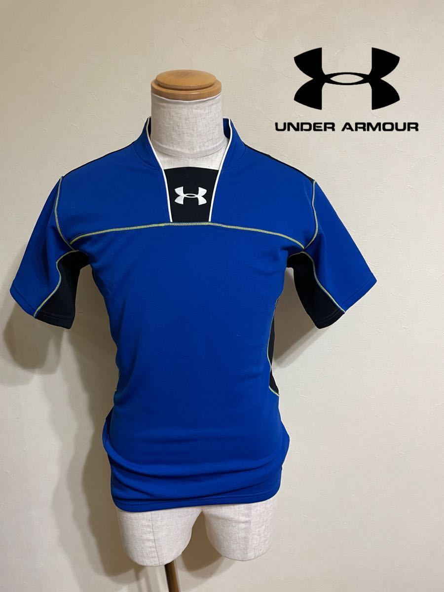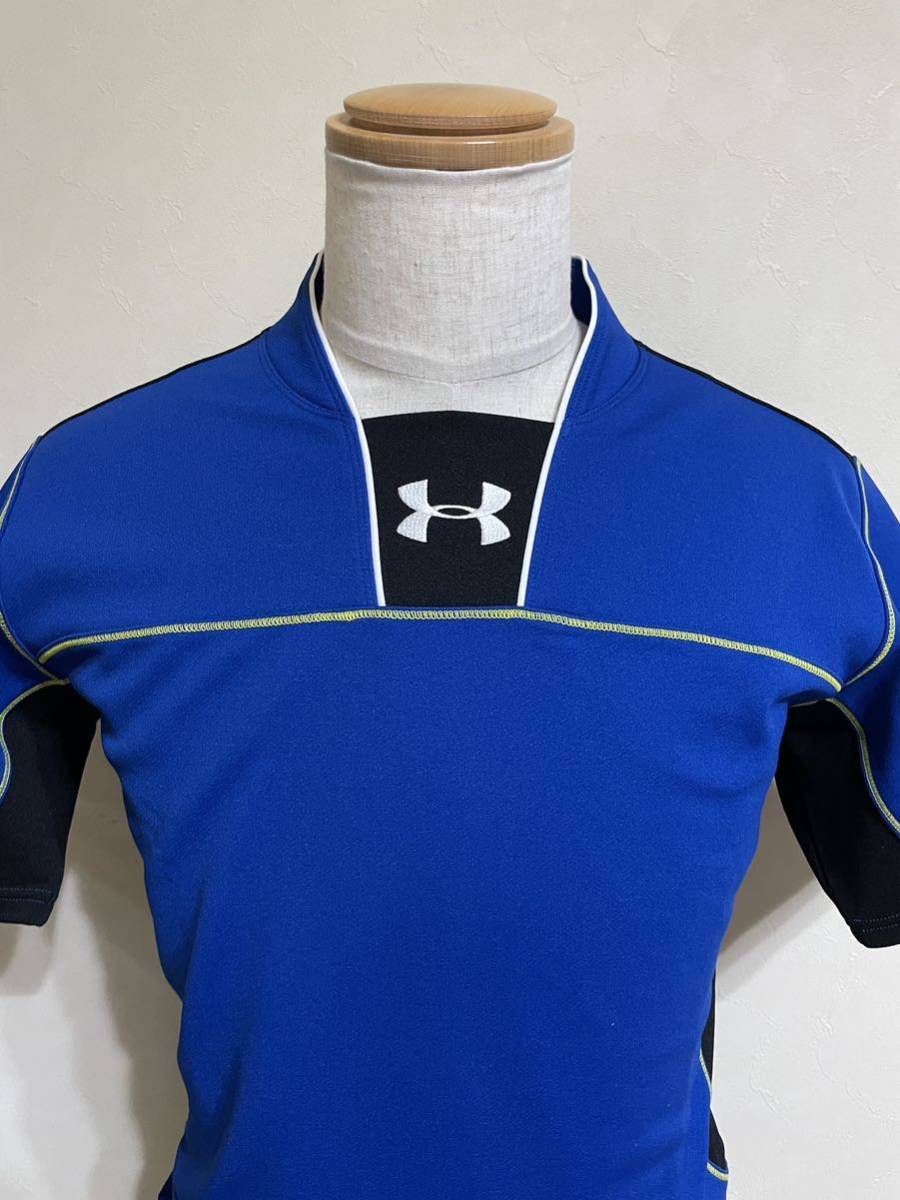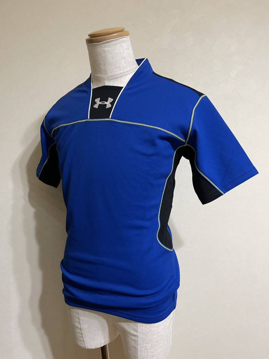 【美品】 UNDER ARMOUR アンダーアーマー ラグビー ジャージ トレーニング ウェア トップス サイズLG 半袖 青黒 MRG5439