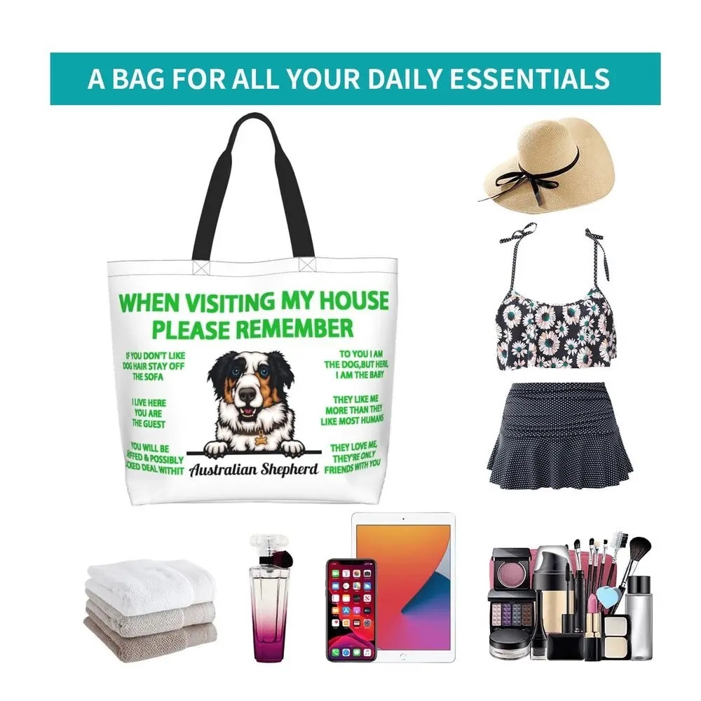 □オーストラリアン・シェパード☆トートバッグ★白♪☆犬好き♪大容量★カジュアル♪鞄☆お出かけ♪日常★新品未使用品★送料無料◇