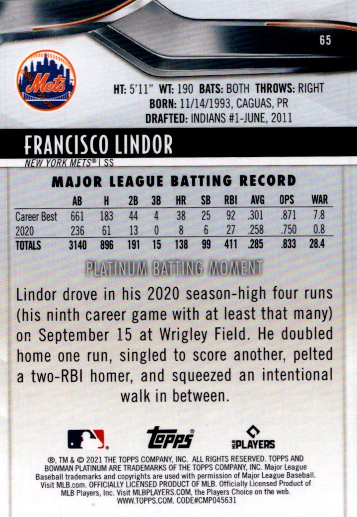2021 Bowman Platinum フランシスコ・リンドール Francisco Lindor #65
