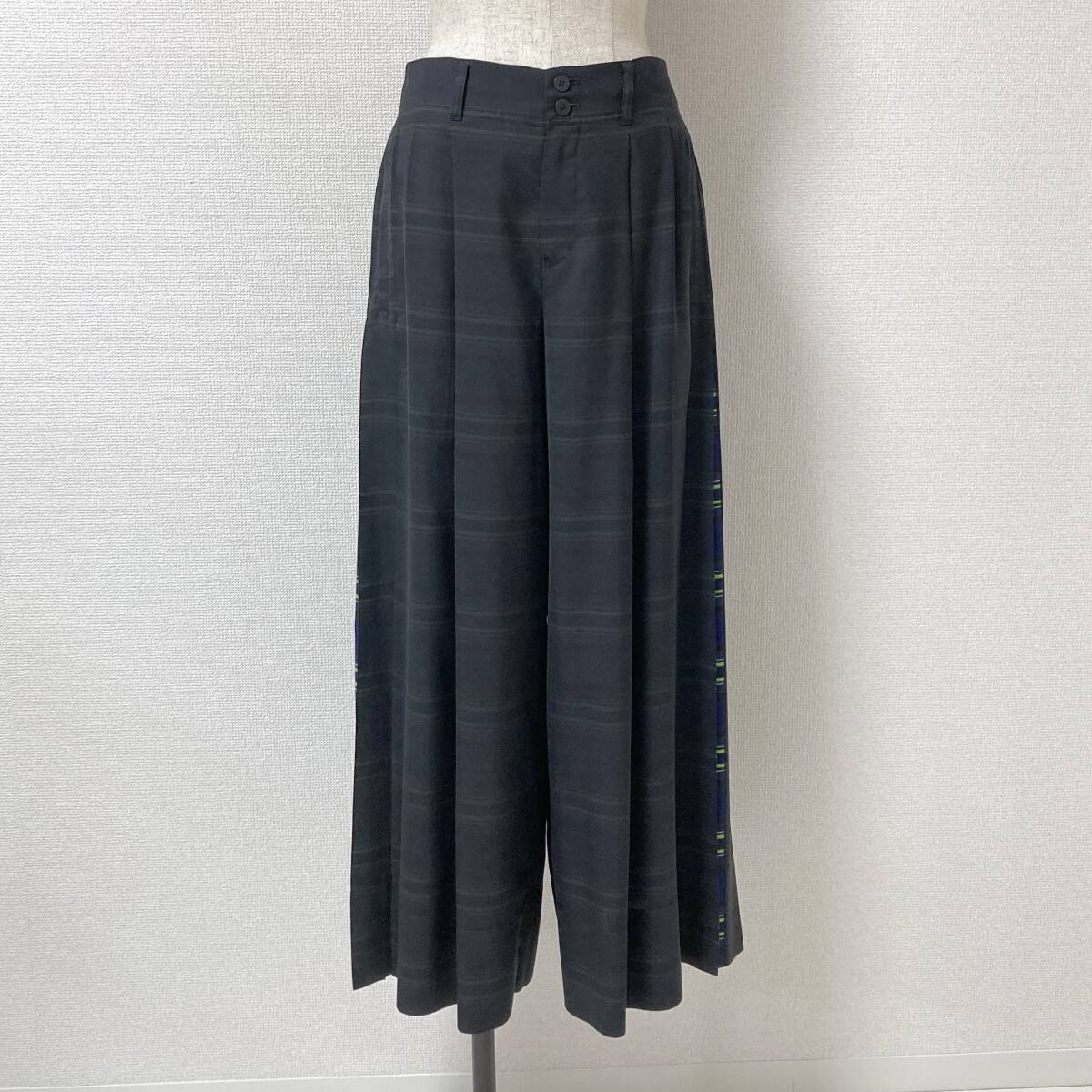 ISSEY MIYAKE プリーツ ワイド 袴パンツ チェック ブラック